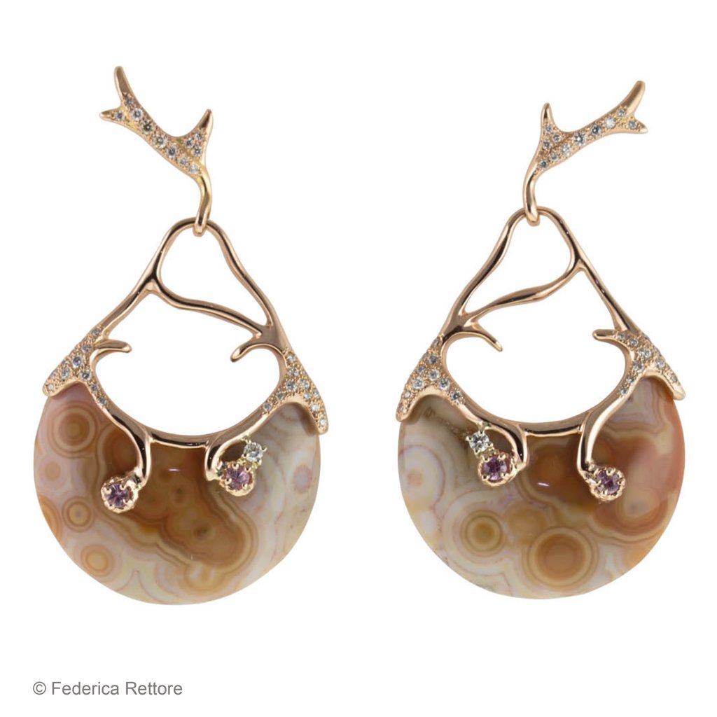 Accent every woman’s beauty with the sound of the sea framed in a precious aquamarine petal. Brighten her up with the centennial story of a pearl. Make her shine at the mysterious light of black diamonds. Wear the nature in its most precious form, this is the central idea of Federica Rettore winter 2014 “ready to wear” jewelry collection. Planet Earth is the source of inspiration chosen by the Milan based designer, loved by the most elegant women all around the world. Her winter 2014 collection focus the attention onto the uniqueness by nature of semiprecious stones. Grey labradorite, rodocrosite, turquoise become one of a kind pieces of art thanks to the artistic genius of Federica Rettore. Her hand engraving skills create cuffs, bracelets and pendants. The semiprecious stone petals are adorned with rose gold and diamonds that highlight the femininity of the design, which distinguish the collection. Zebu horns cuffs and bracelets, being the signature pieces of Federica Rettore, are included in the 2014 winter collection as delicate bracelet that follows the same distinguish design as the one in zebu horn. Federica Rettore’s eclectic use of materials, from the most precious to the most unusual, makes one say: “luxury coupled with taste becomes art”.It’s more than 18 years that the creative experience, handmade skill and restless aesthetic research of Federica Rettore satisfies the desires of the most demanding clients all around the world, from Italy to New York, Beverly Hills, Chicago, Dallas, San Francisco, Las Vegas, Aspen, Vail, and now also Hong Kong, Puerto Rico and Japan. This is because her jewels are unique pieces. Because her gold comes in its warmest shades. Because, to her, “diamonds are fine but hey, they are better if they are rough”. Because her pearls are never globular and she even dares to place Mabè pearls upside down.And it’s not enough. As any great fashion designer does, Federica Rettore readies two new jewelry collections a year. Her custom creations, however, which are made to satisfy desires and needs of her most demanding customers, never age.Why don’t you take a look and pick your precious piece of Earth? Just click on the link