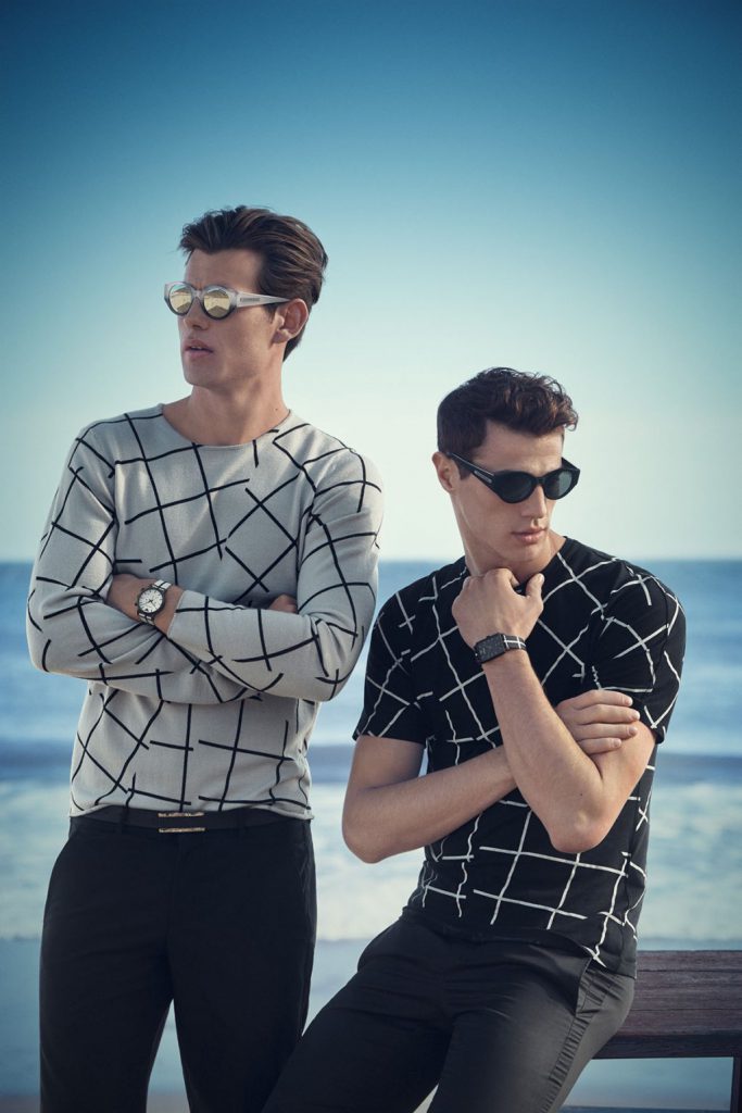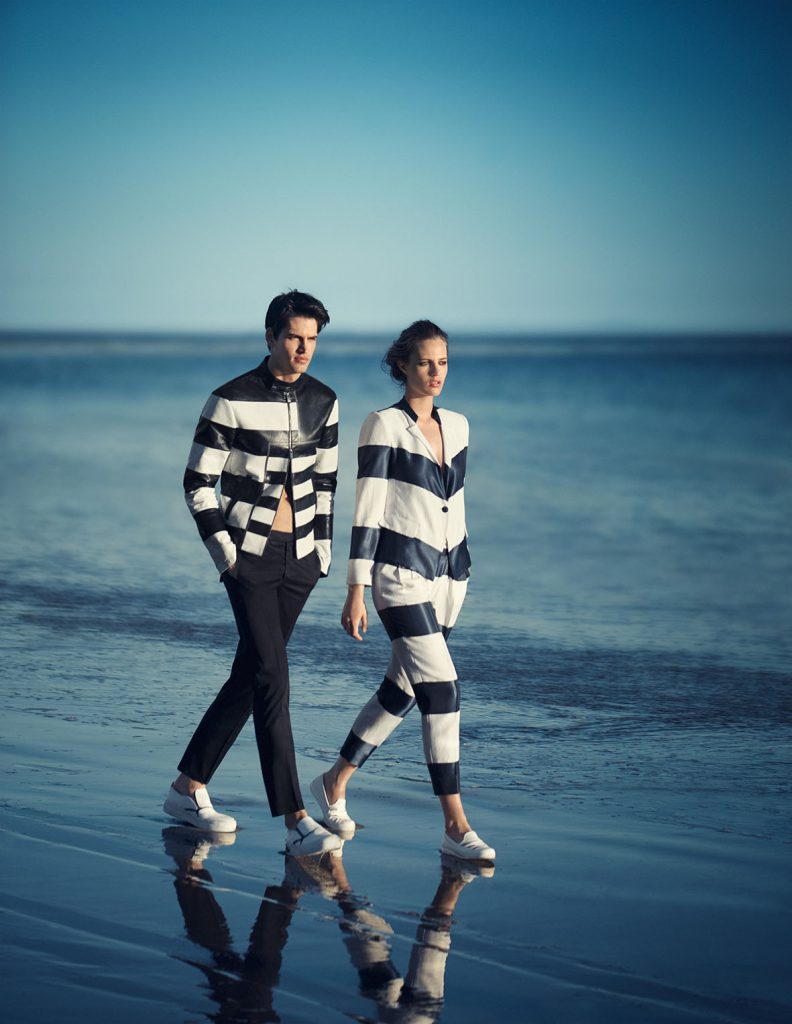 Emporio Armani unveils the new Spring/Summer 2015 advertising campaign, shot in Santa Barbara by Boo George. Set on the seashore between the dunes and the beach, against a clear blue summer sky, in the powerful yet soft light of sunset, the shots convey calmness and harmony. The metropolitan allure of clothing featuring determined graphics and shiny surfaces communicates fluidly with the environment, creating a contrast between natural and artificial with a strong evocative power.The scene features models Matt Trethe, Andy Walters, Jakub Zelman, Vittoria Ceretti, Julia Banas and Antonina Petkovic, shot alone as well as in groups. Volatile, they express the energy of the present, looking towards the future.
