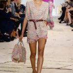 With a romantic and modern spirit, she matches feminine blouses with small bomber and shorts, together with the Secret Agent bag in metallic tweed. She wears a business suite with her characteristic nonchalance, adding a touch of catlike spirit. In floral tops and sandal with sculpted heels and animal prints, she walks towards unknown paths.