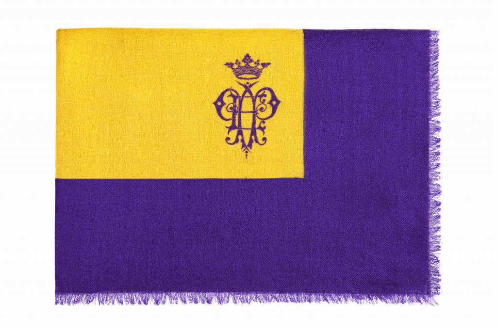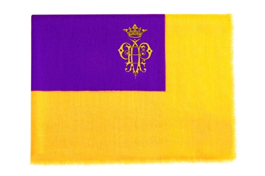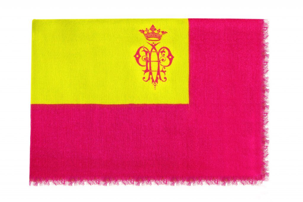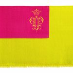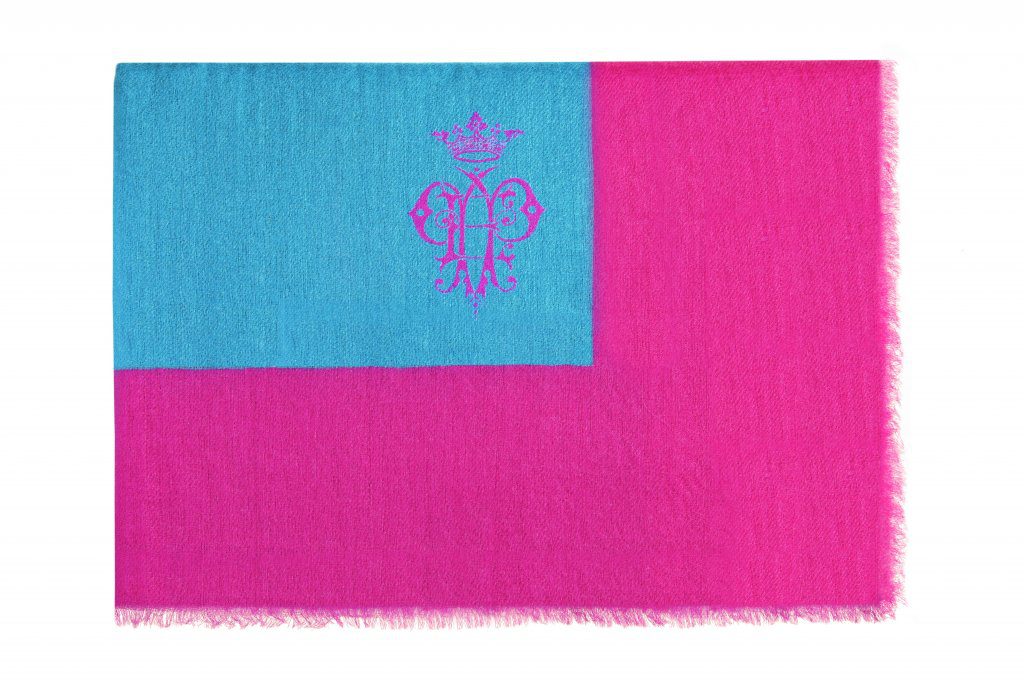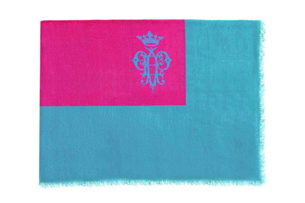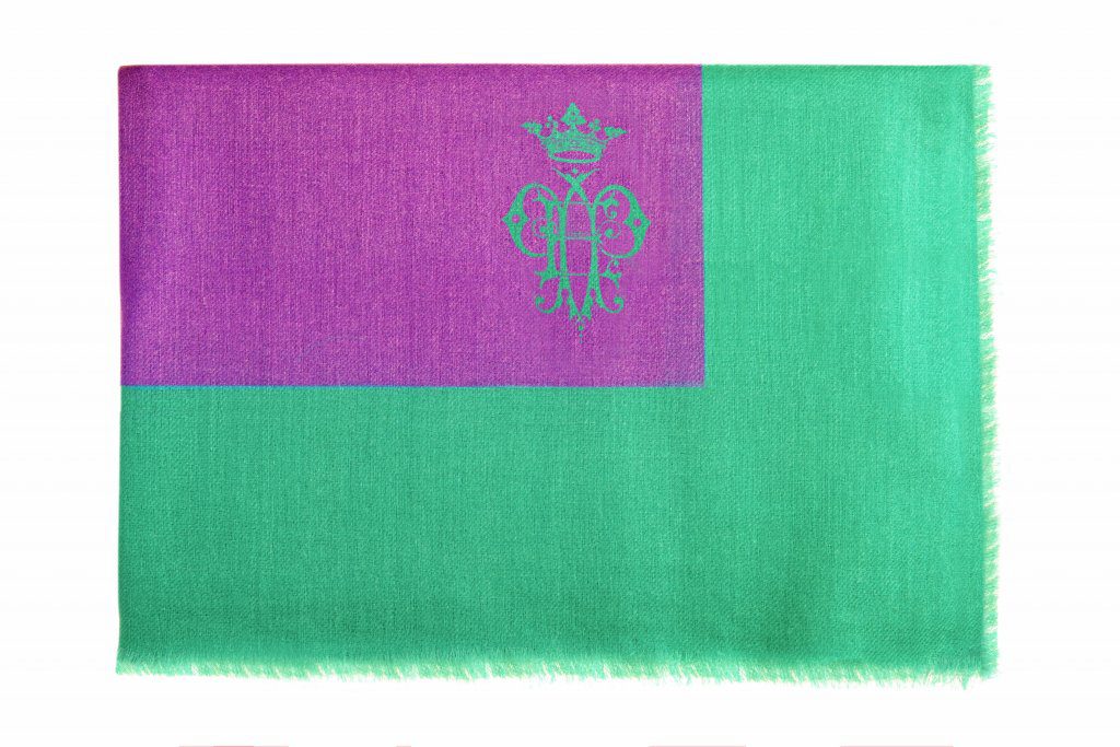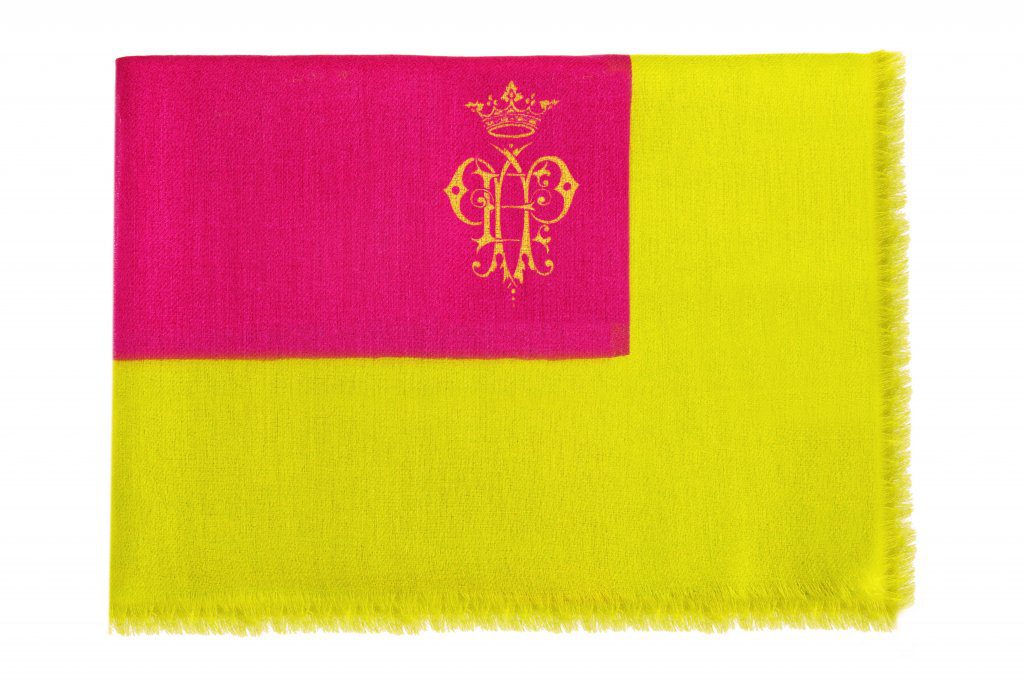 The stoles are characterized by contrast trim, Monogram Maison detail and frayed on the sides. The nuances presented are the classic color palette of Emilio Pucci: fuchsia bougainvillea, dark purple iris Florentine, mango, lemon yellow, pink Emilio, red geranium, mint, and turquoise sea of Capri.