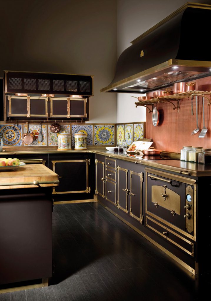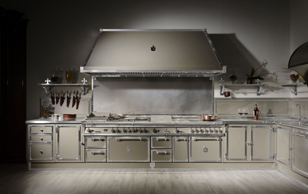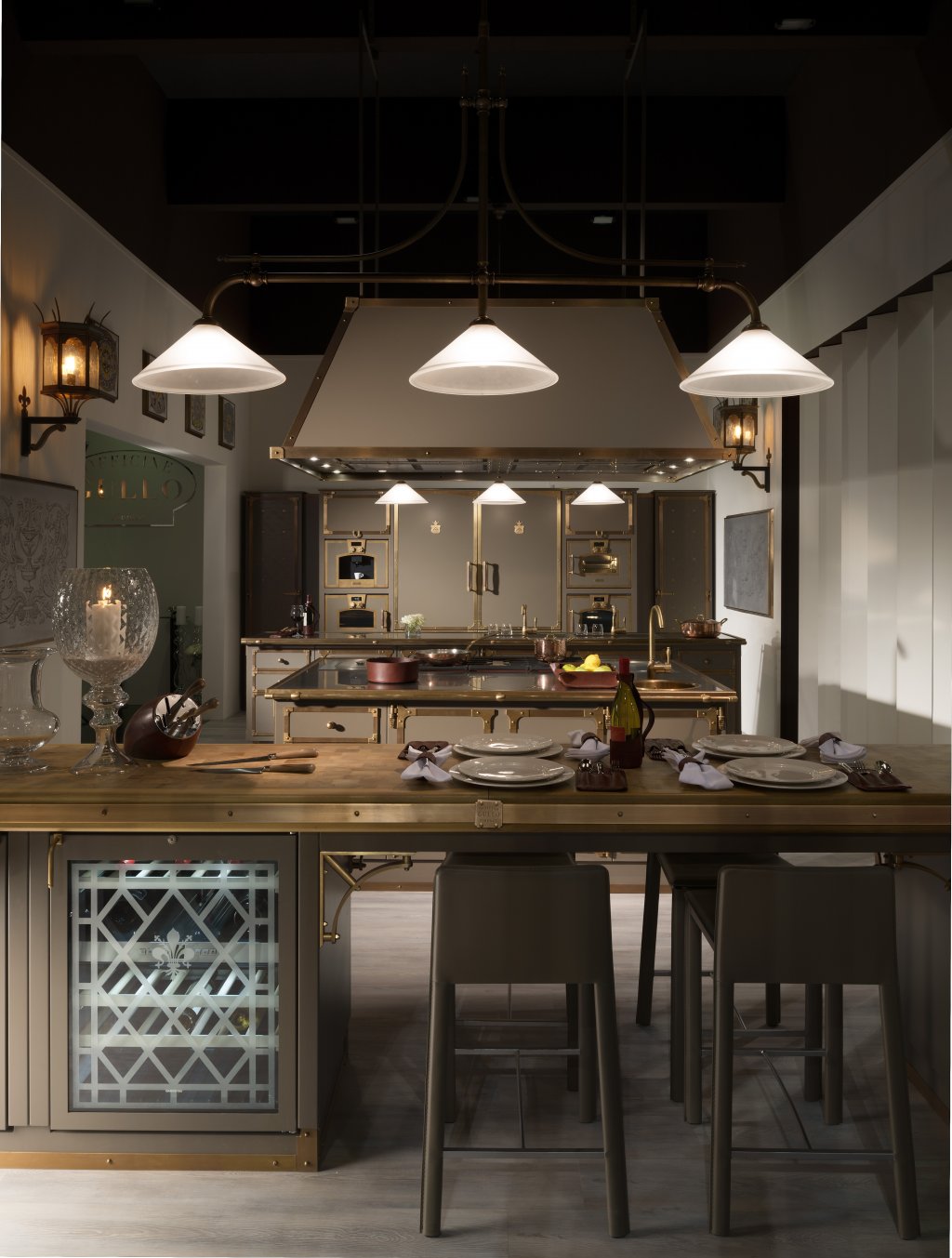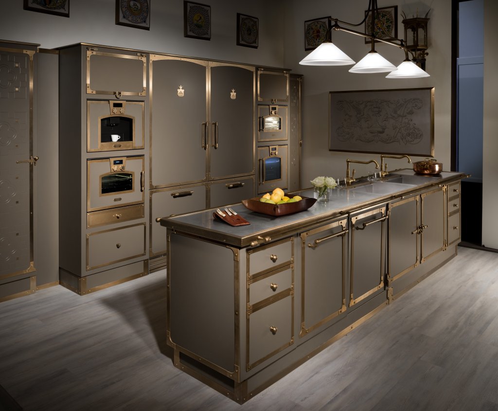 Officine Gullo exceptionally succeed in finding the perfect balance of traditional Italian craftsmanship and technological innovation: their kitchens, handcrafted masterpieces in metalwork style, are contemporary and vintage at the same time. Each creation is built with flexibility in mind and can accommodate an endless number of configurations. A professional home kitchen with bespoke design, sophisticated engine and the experience of premium restaurant cooking.Custom design, finest materials and an unparalleled attention to details. Every kitchen can be customized in dimension, color cabinets and combination of appliances. The exclusive ranges are individually configurable and the options for accessories are beyond compare; the company master craftsmen design will accommodate any sized project and compose the kitchen that will best suit your needs. Each product combines the latest technology and the finest materials – stainless high thickness steel, burnished copper, cast iron and forged metal. You can select from powerful barbecues with lava rocks, polished griddles, steel deep fryers, copper coup de feu and modern induction hobs. Officine Gullo’s collections – artisan creations – are made for the most demanding: the “Pearl Champagne” with its finishings and top frame in nickeled brass or the complete kitchen “Gray Beige Touch” in antique brass, and not to mention the wine cellar. High tech wine dispenser to serve excellent wines directly into glasses, and optimal conditions of storage. A kitchen that exceeds expectations, Officine Gullo makes dreams of cooking a reality.
