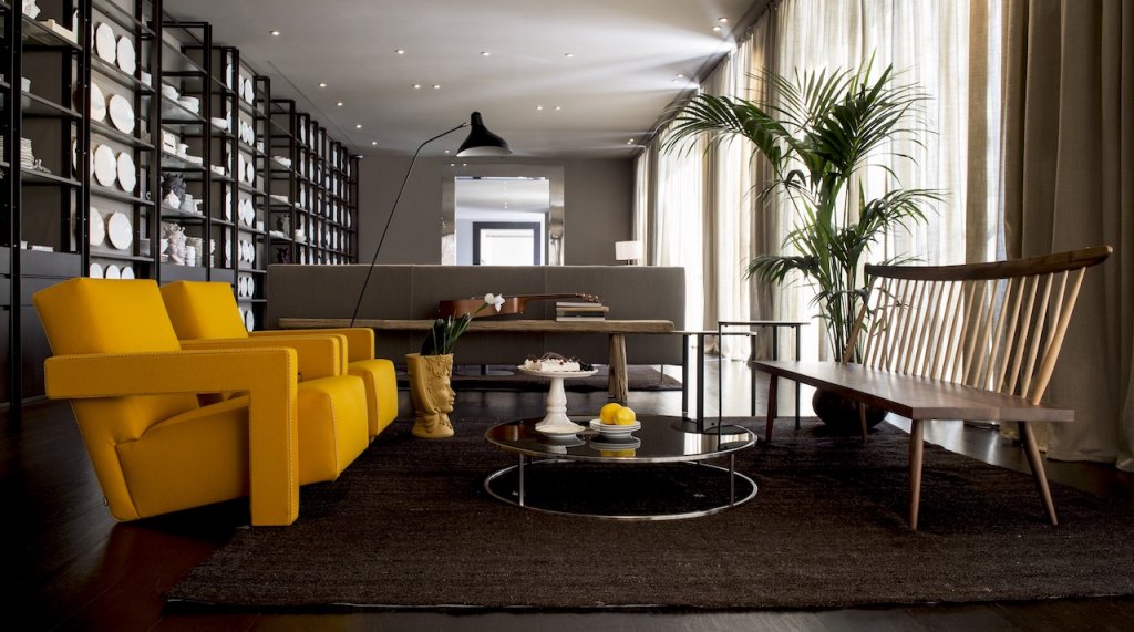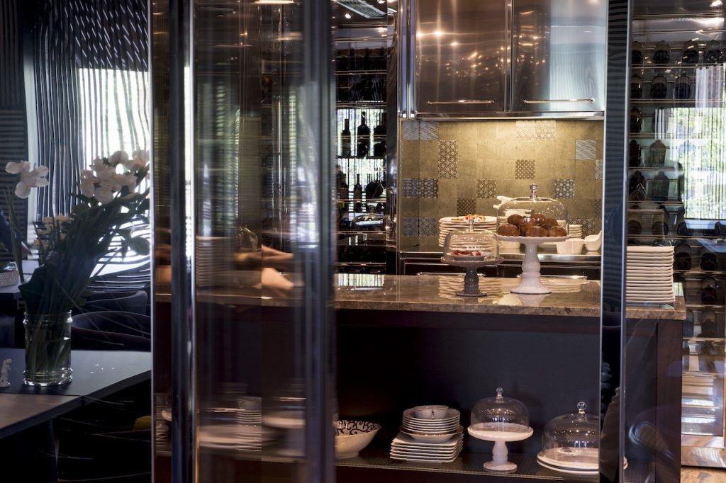 is encouraged by the winking night-club vibe of the cocktail bar area, where a number of -unusual- spices and herbs marriages dominates the palate. The lounge, with Richard Ginori chinaware and Virginia Casa ceramics, renders his tribute to Sicily -Caltagirone city, in particular- with the additional display of anthropomorphic vases created by Stefania Boemi. Mostly from well-known architect Piero Lissoni’s collections (mostly for Cassina, Living Divani e Porro), the furniture also includes the iconic “Cicognino” chairs by Franco Albini. Getting clues of this particular restaurant personality -a collectors motorcycle assembled by hand piece by piece and randomly exposed musical instruments helping us- the grand first impression strikes curiosity to further explore.