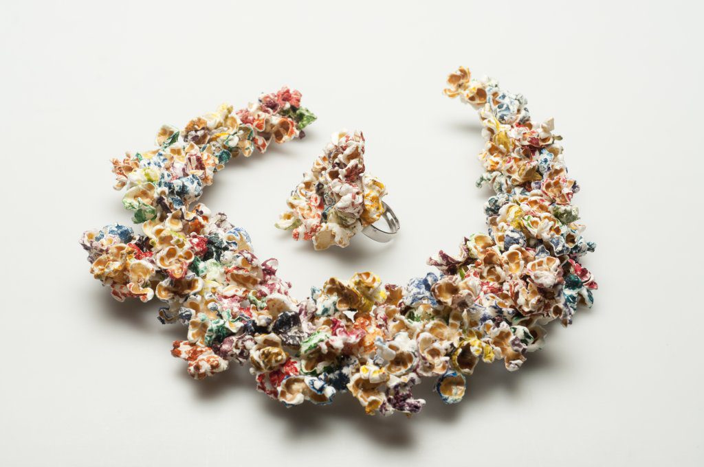 Salt, sugar but also pasta and rice. Who said that a jewel, to be called so, has to be made of gold? The Museum of Jewelry in Vicenza – the first in Italy dedicated exclusively to jewelry – hosts the exhibition Food Jewelry, from July 16 to August 28 2015. An original exhibition. The project is in line with the theme of Expo 2015 and presents 150 jewels realized with food or food-inspired. The value of these jewels lies not in the materials. The boldness of the project makes these creations small masterpieces of haunting beauty, realized by genius designers likeGaetano Pesce and Francesca Braga of ivdesign.it. The exhibition offers a section of eatable works of young designers made with unusual daily ingredients like salt or rice, giving a new function to food other than nutrition.