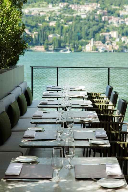 Se il palato è appagato dalla cucina stellata firmata Berton, anche l’occhio vuole la sua parte. Il design è curato da Patricia Urquiola – che si è occupata anche gli interni e gli esterni dell’hotel – ed offre raffinatezza che sposa il relax dell’atmosfera. I tavoli sono realizzati con le stesse pietre locali che compongono la facciata del Sereno Hotel, impreziosite dall’uso creativo di seminato e pietra Travertina. D’impatto l’ampio terrazzo esterno, con vista lago, dove d’estate l’esperienza culinaria diventa un’estasi per la vista, libera di spaziare sulla riva orientale del Lario.