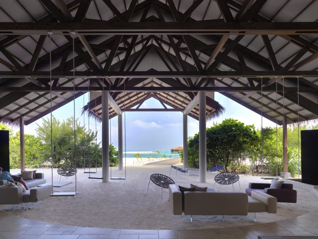 Arrivando alla reception, si viene accolti dalla magia di un bosco di altalene, preludio di un luogo incantato in cui si sviluppano 150 camere di quattro diverse tipologie, una suite presidenziale e un ristorante davvero speciale. L’esperienza di Azemar alle Maldive e l’esperienza di LAGO negli arredi, hanno dato vita a un luogo in cui il viaggio si trasforma in un momento, dove le relazioni umane sono valorizzate anche grazie agli ambienti che sono stati creati. Il design moderno e leggero esalta la bellezza naturale dell’isola, restituendo un’atmosfera di freschezza e benessere nel pieno rispetto del luogo.