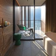 Nelle 30 spaziose suite, dai 65 ai 200 metri quadrati, la luce inonda gli spazi e apre la vista sul lago grazie ad ampie vetrate e a terrazzi privati. All’ultimo piano della struttura, la Penthouse Suite, con i suoi 200 metri quadrati di superficie, permette di vivere appieno la bellezza del lago, con una terrazza con jacuzzi privata che affaccia sul paesaggio e ambienti ampi. Due bagni, una sala da pranzo, un minibar, un soggiorno e un’ampia cabina armadio.