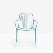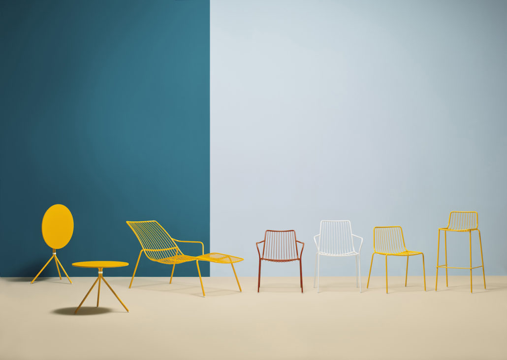 Design S. Mandelli : A. Pagliarulo Nolita è una famiglia di sedute da esterni che rievoca le origini di un percorso storico, iniziato da Mario Pedrali nel 1963 con le sue prime sedie da giardino in metallo. La collezione sembra scaturire da ricordi in trasparenza, un’atmosfera senza tempo da piazza assolata e vivace, per un risultato di solida durevolezza in forme semplici ed iconiche. Interamente in acciaio è studiata specificatamente per l’esterno