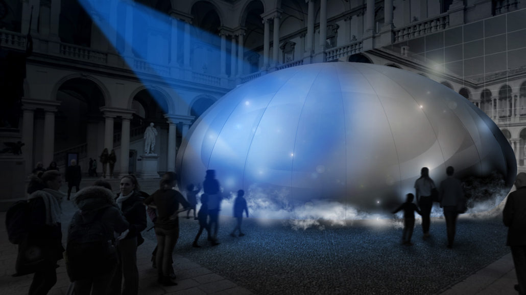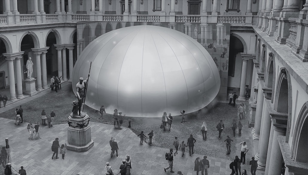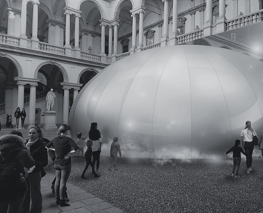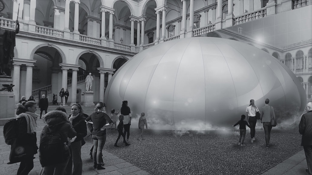 All’interno del cortile d’onore del Palazzo di Brera si potrà ammirare l’installazione di un’importante padiglione dal diametro di 20 metri, la cui forma ricorda la fonte dell’aria: la goccia d’acqua. Verrà creato un ambiente confortevole proprio nel cuore di Milano, grazie alle tecnologie Panasonic di elaborazione dell’aria.