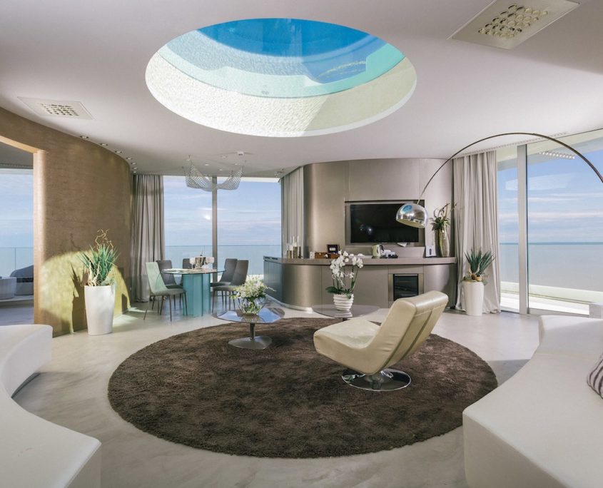 Decido di prenotare al Premier Resort. Lo frequento da tempo e quando arrivo mi sento tranquilla perché ho tutto ciò che desidero a disposizione. Il gusto Made in Italy di design arreda tutti gli spazi, con particolare attenzione alle camere dotate di terrazza privata. Scelgo sempre la vista mare, mi rilassa, mi fa sentire in pace con il mondo. Mi piace fare colazione in camera, nella mia privacy, sulla terrazza guardando il mare. Quasi tutte le camere hanno spaziose terrazze e comode chaise loungue per prendere il sole indisturbati. Premier Resort è il primo e unico complesso turistico di lusso sul mare a Milano Marittima.