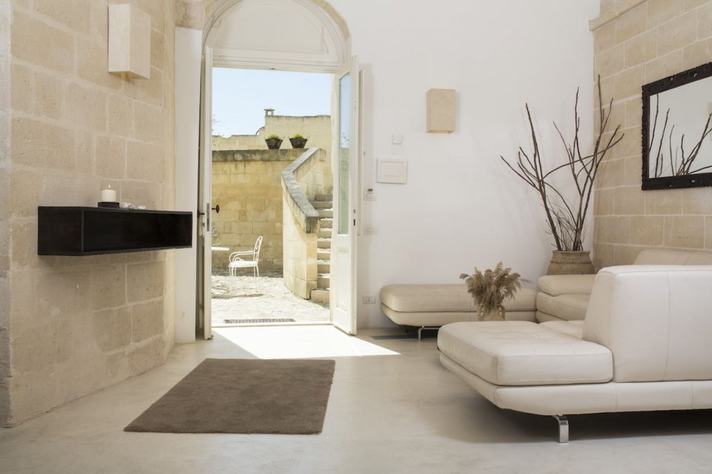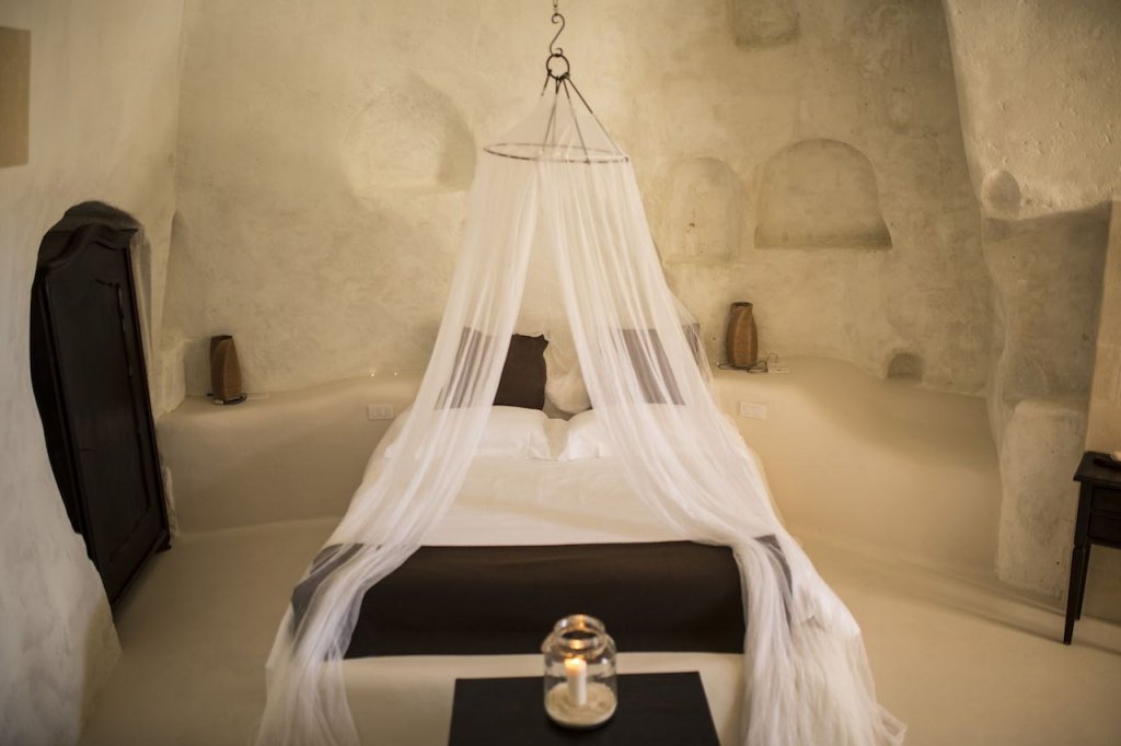 Qui le stanze sono dei veri e propri scrigni, preziosi nella loro eclatante semplicità, ricavate dai locali della Regia Udienza settecentesca, dalle arcaiche case in grotta e dalla chiesetta rupestre di Sant’Angelo. Un modo unico per vivere la magia primordiale dei Sassi di Matera nel rispetto dei luoghi ma senza rinunciare al comfort e allo charm, grazia a una ristrutturazione che ha saputo valorizzare la storia e l’autenticità di questi ambienti.