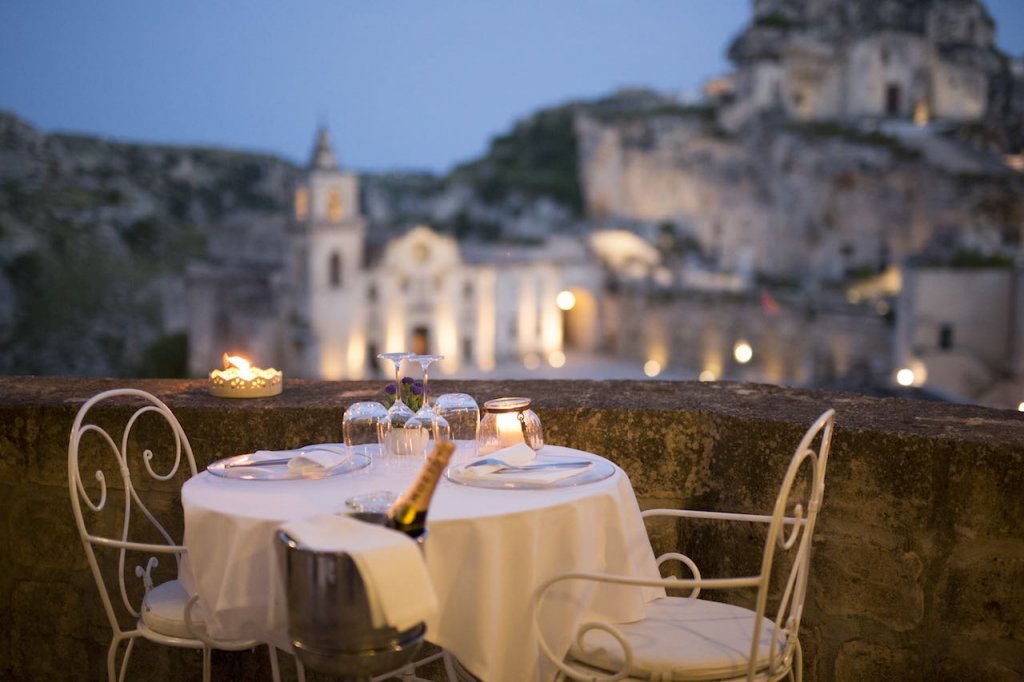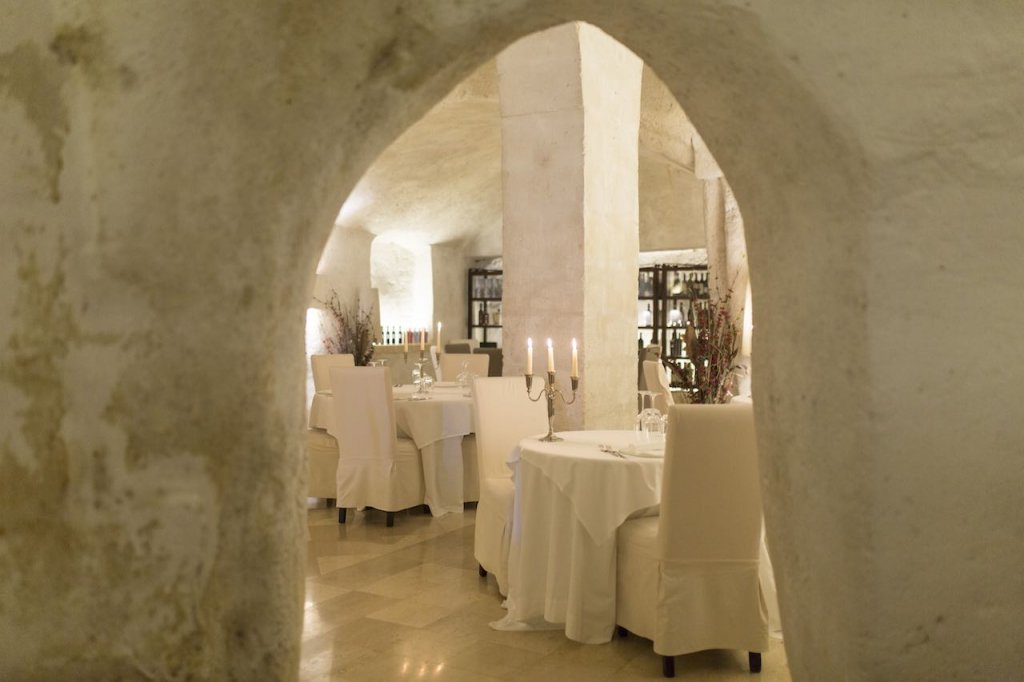 Lo stesso rispetto per la tradizioni e per il territorio si ritrova al ristorante, dove vengono proposti i sapori della territorio interpretati con creatività dallo chef, in un ambiente ricercato dall’atmosfera soffusa, nelle cavità della roccia millenaria o nell’incanto della terrazza con vista superba sui Sassi.