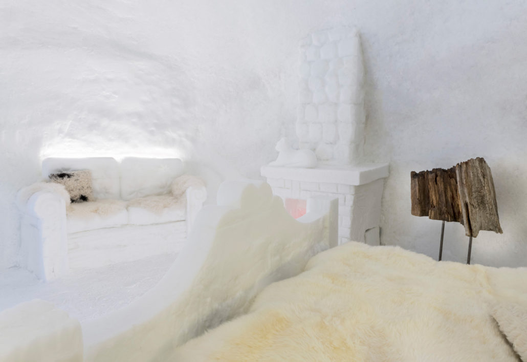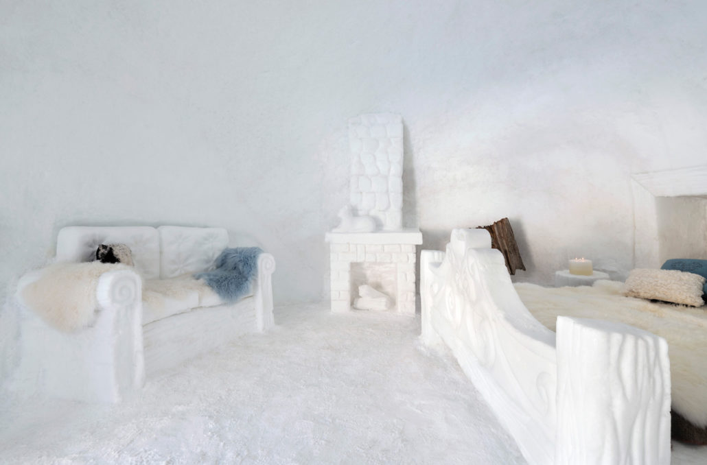 Snow Suite, dormire in una stanza di neve, come in una favola