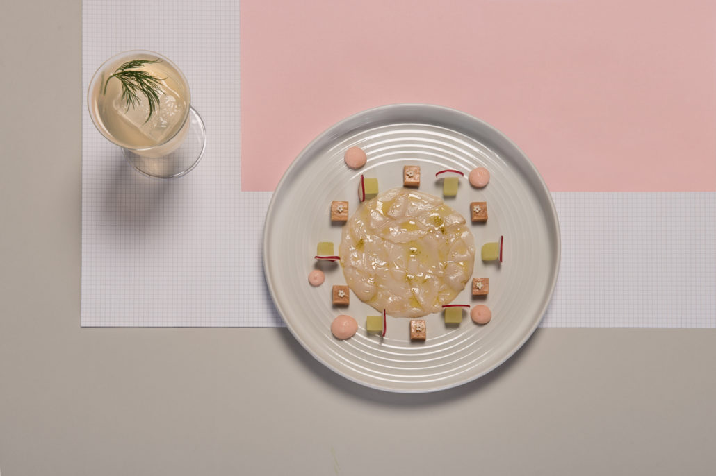 A partire dagli ambienti. Le atmosfere del The Market Place sono internazionali senza internazionalismi, un po’ come i piatti. Si apre la porta e si fa ingresso in un luogo che è insieme molti luoghi che abbiamo visto, dove ci siamo fermati incuriositi dal nome di un piatto o da un profumo. Ma non è nessun altro luogo e nessuna altra città. Non è Como anche se a Como affonda le radici, si nutre della sua terra con un orto in cui crescono ortaggi ed erbe spontanee e dove scorrazzano galline ruspanti.