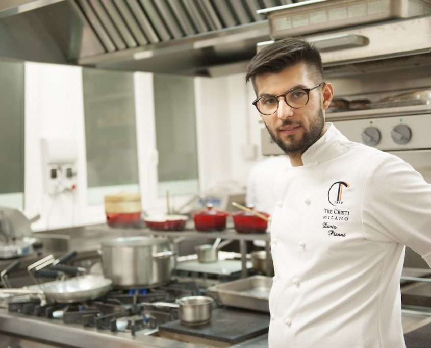 Per Dario Pisani questa è la prima esperienza da capocuoco. Qui ripone tutta la sua passione e, nonostante i soli 25 anni, tutta la sua esperienza nelle cucine di grandi chef tra cui Enrico Crippa, Carlo Cracco e Marchesi. Ecco perché questo rigore, oltre alla fantasia, ecco perché il culto per le materie prime, oltre alla raffinata sintesi dei piatti. Le sue creazioni nascono sempre dall’uso di prodotti pregiati, freschi e leggeri, come le paste fresche e il pane fatti con le farine biologiche. Lo stile essenziale ed elegante dei piatti a menù non tradisce mai la voglia di meravigliarsi scoprendo nuovi sapori.
