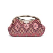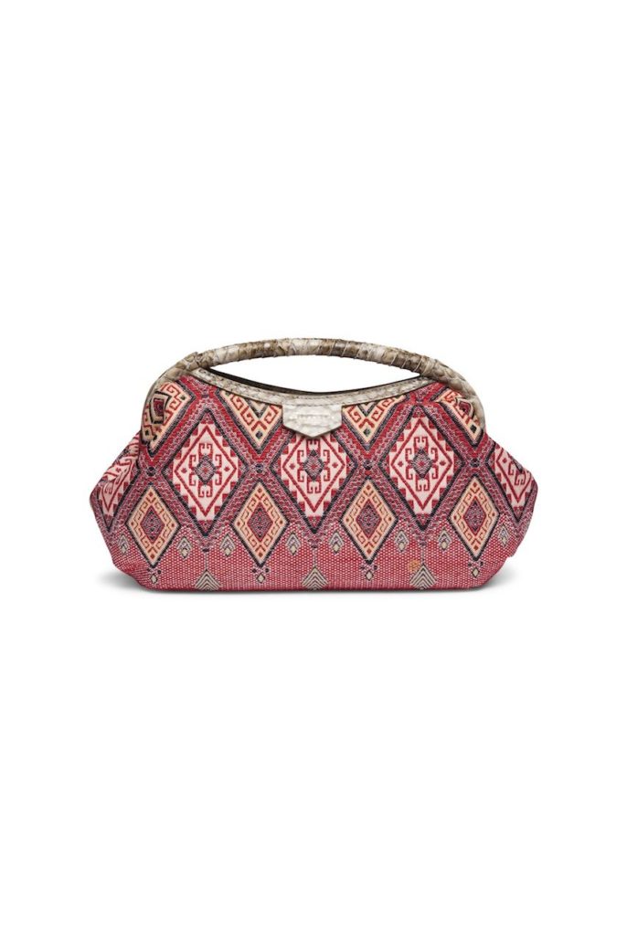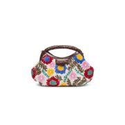 Rivista con spirito vacanziero anche l’iconica handy bag. Il design mantiene la sua identità raffinata e retrò, ma cambiano i materiali, in questo caso in tessuto intrecciato e con ricami all over, che confermano questa borsa come oggetto di culto accattivante.