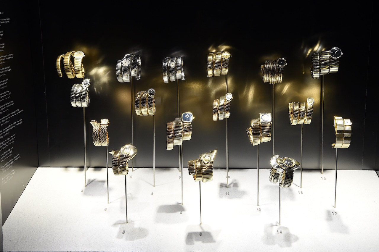 L’excursus romano, a cura di Lucia Boscaini, Bulgari Heritage Curator e del Dipartimento Brand Heritage della Maison, va dai gioielli antichi, provenienti da Pompei e dal Museo Archeologico di Napoli, alle opere coloratissime di Niki de Saint Phalle, a quelle “sottili” di Alexander Calder, passando per quelle ironiche di Keith Haring e Joana Vasconcelos, solo per citare alcuni artisti in mostra. In più sono esposti gli scatti di giganti della fotografia come Robert Mapplethorpe, Helmut Newton, Peter Hujar e Guido Mocafico: interpreti eterogenei della sensualità e vanità del serpente. Per quanto riguarda l’universo Bulgari, la Maison, già dagli anni Quaranta del ‘900 ha colto la forza espressiva di questo segno reinterpretandolo con flessuosi orologi-bracciale che sono poi divenuti iconici. In mostra ci sono i primi modelli realizzati con la tecnica del “Tubogas” e quelli contemporanei, realizzati in scaglie d’oro rivestite da smalti policromi.