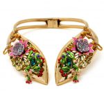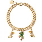 Con un occhio agli esperimenti teatrali della couture francese anni Ottanta, la capsule Casadei by Ilenia Corti ritrae un’Amazzonia ipnotizzante, in un baccanale di flora e fauna. È il sogno che si fa accessorio. La collezione include bijoux, tra i quali collane, braccialetti, anelli e orecchini. Opera del lavoro minuzioso di maestri orafi artigiani è ilbracciale custom made in argento, brillanti, pietre preziose e smalti, realizzato dalla maison Santagostino di Valenza.