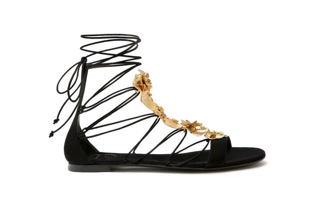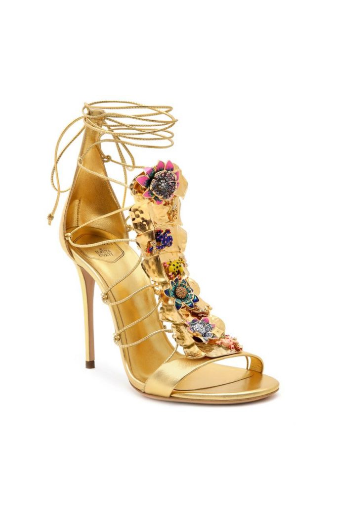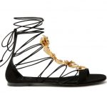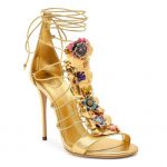 E anche i sandali non sono da meno. Per l’occasione si abbinano ai gioielli o diventano essi stessi gioiello. Cesare Casadei ha creato, infatti, un modello di sandali (in due versioni alti o flat) con una struttura snodabile di metallo che accoglie gli elementi bijoux. I sandali sono realizzati in due varianti: in pelle laminata oro con applicazioni multicolor o in camoscio nero con decorazioni oro tono su tono.