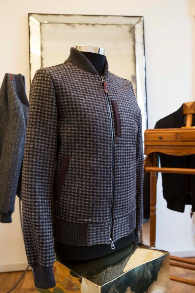 Il bomber è vero protagonista della collezione Due Soli. Sapore vintage, la lana scherza con le trame che sembrano sbagliate ma l’occhio s’inganna. Gli apparenti errori compositivi sono pensati per conferire un touch contemporary originale, rendendo ogni capospalla unico. Ho provato il Livornese – bomber che si ispira all’antica tradizione marinara toscana -, o forse era il New Normal – capo dal taglio asciutto e giovane, da usare praticamente ogni giorno grazie ai materiali tecnici come il panno lycra e neoprene a tre strati -, oppure era il Dandy, con materiali ricercati e la fodera a contrasto. Magari l’Oreste e il Sartoriale, che completano la collezione. Di una cosa, però, sono certo: vestiva alla perfezione.
