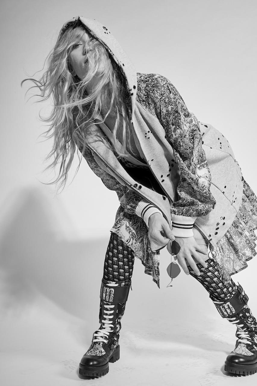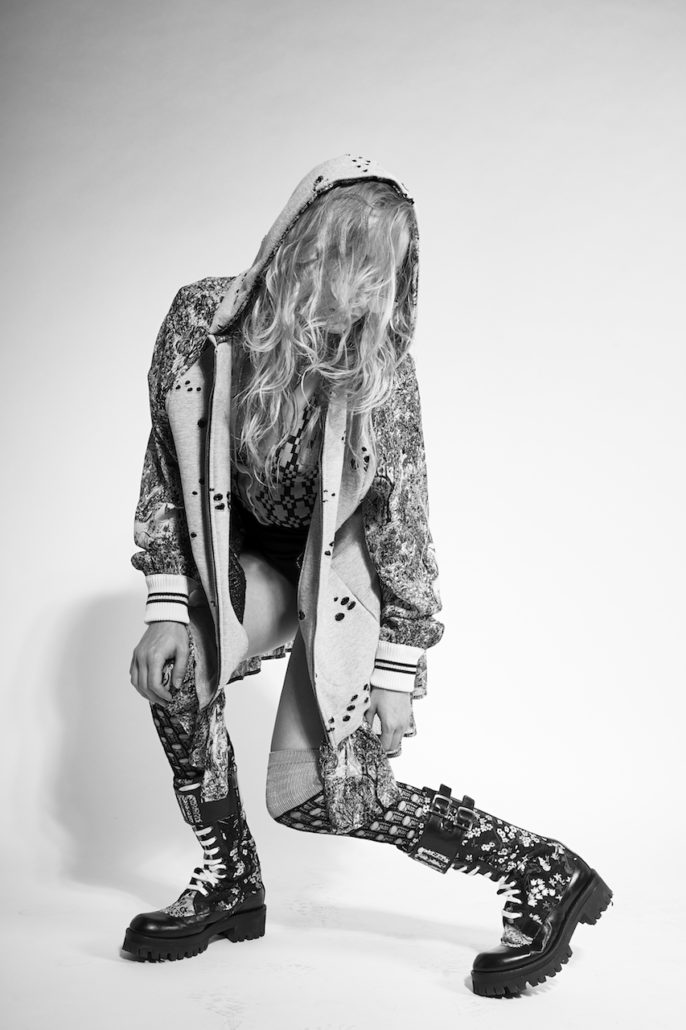 Efisio disegna la collezione Uomo-Donna I’M Isola Marras SS18. Per farlo, prende ispirazione dai manga di Masamune Shirow e dall’eroina del film Léon di Luc Besson Mathilda Lando. La collezione è caratterizzata da una combinazione di silhouette androgine e giocose e di strutture e dettagli netti. Presenta un insieme di pezzi contrastanti e all’avanguardia. Crea un mondo dove gli ideali romantici della gioventù incontrano l’estetica punk underground. Qui, i bomber, i tessuti d’argento traforati e gli scarponi da combattimento vengono abbinati a camicie a righe, damasco di lusso e stampe floreali. I’M Isola Marras SS18 rivolge una particolare attenzione a elementi chiave come la maglieria di qualità e gli accessori. Mette in evidenza un prodotto più completo che parla alla nuova generazione di creativi.