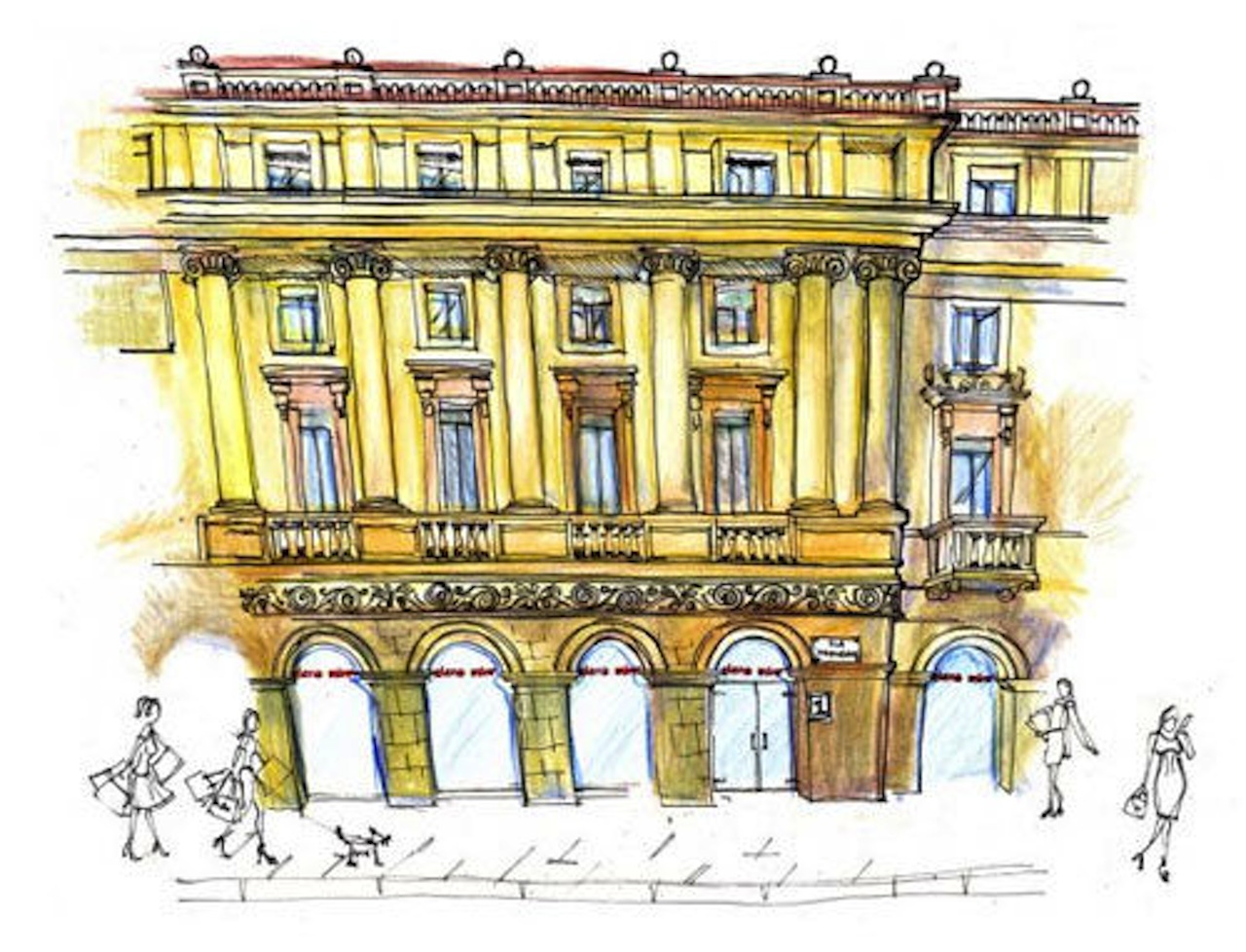Questo Flagship Store ha una lunga storia che comincia nel 1400. In questo anno il nobile Giovanni Rodolfo Vismara dona ai Frati Minori Osservanti del convento di Santa Maria degli Angeli parte di un edificio. Nel tempo questa struttura prenderà il nome di Cà delle Comare. Sulla stessa area e a pochi passi, nel 1778 viene inaugurato il Teatro alla Scala. Deve il suo nome alla chiesta di Santa Maria della Scala, sulle cui ceneri venne costruito. Nel 1817 il palazzo tra via Verdi e via Manzoni dà i natali allo storico Caffè Cova, che diventa poi il centro di ritrovo della cultura milanese. Con la seconda guerra mondiale, arrivano i danni e la distruzione. Ma, grazie al lavoro di architetti come Antonio Cassi Ramelli, all’edificio viene restituita vita e bellezza.