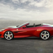 La linea è frutto dello studio del Ferrari Design Centre e si caratterizza per la configurazione a due volumi “fast-back”, soluzione inedita per un coupé-convertibile dotato di tetto rigido retrattile, che ha il merito si slanciare ancora di più la silhouette dell’ultima Rossa. Estrema cura anche per il comfort on-board che si avvale di strumenti di infotainment di ultima generazione. Nella guida all’aria aperta il wind deflector riduce del 30 per cento il flusso d’aria all’interno dell’abitacolo, diminuendo anche la rumorosità. Il debutto della Ferrari Portofino è stato al Salone dell’auto di Francoforte, a settembre.