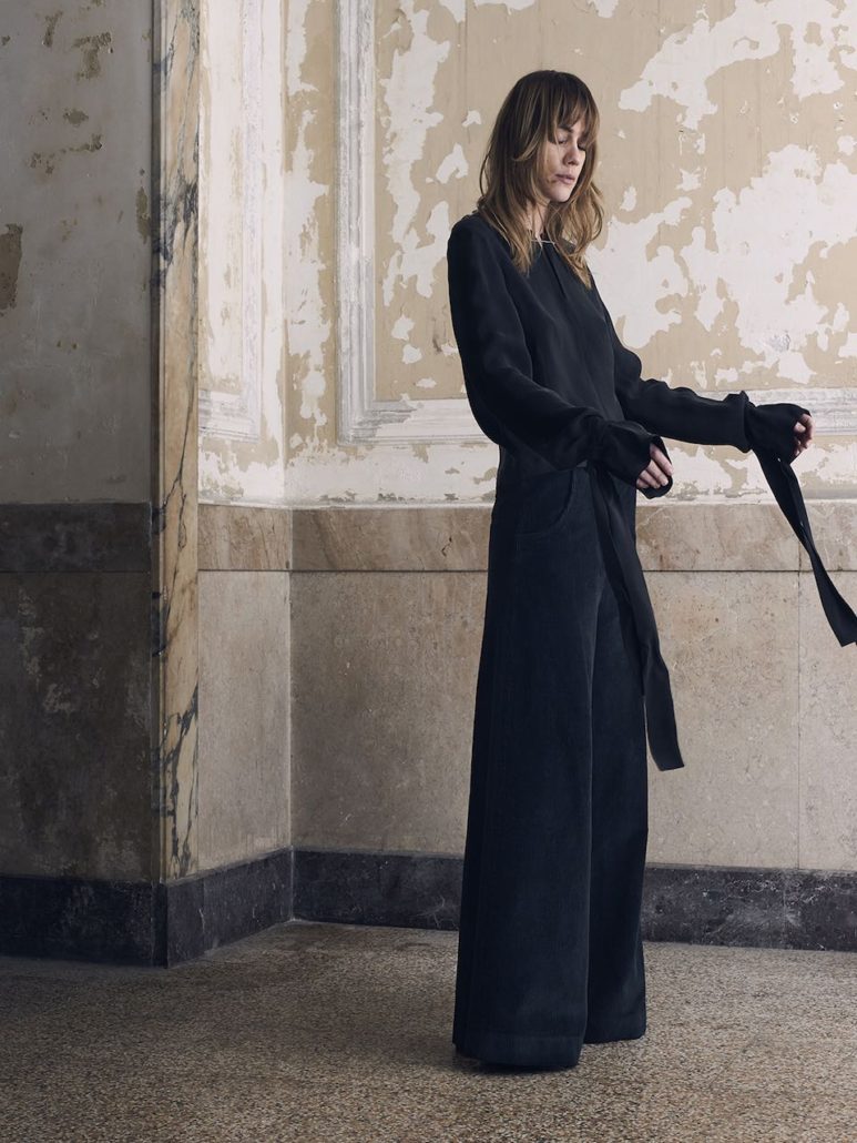 Le linee asimmetriche delle giacche, dei pantaloni oversize, delle salopette e dei kurta sposano i tessuti fermi in cotone stampato. L’uomo Corvaglia indossa lunghe camicie della tradizione afgana e pakistana su freschi sarouel a fantasia oppure in tinta unita.