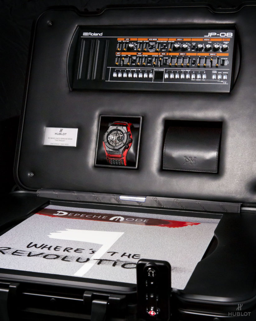Ad ogni orologio sarà abbinato un sintetizzatore Roland JP-08, sempre in edizione limitata della serie Roland Boutique. Un omaggio che ricrea i suoni del leggendario sintetizzatore Roland Jupiter 8, usato dai Depeche Mode nel corso degli anni. Il leggendario produttore di valigie RIMOWA ha creato un’apposita valigetta Topas Stealth in alluminio anodizzato nero e in dimensioni da cabina per esporre questa collezione unica nel suo genere.