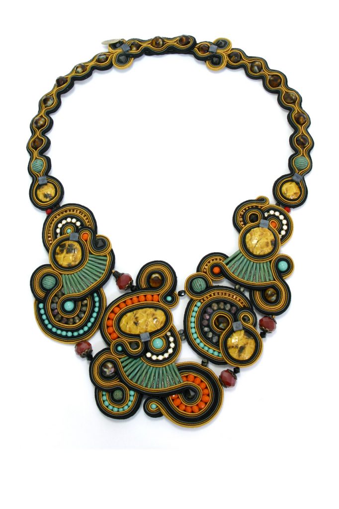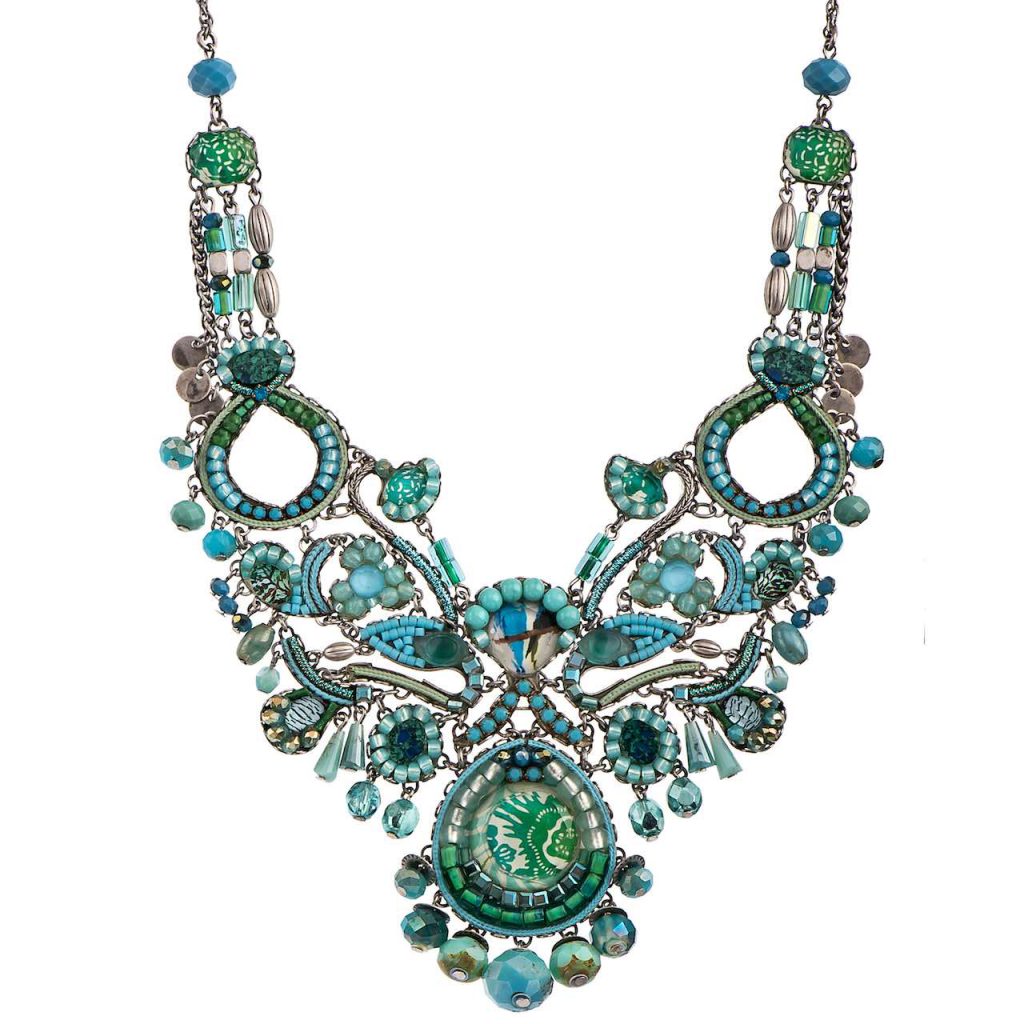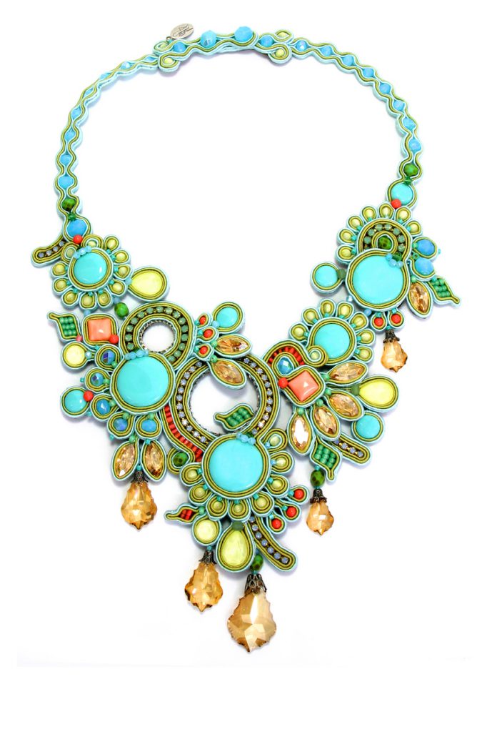 Verde acqua, smeraldo, turchese e ocra disegnano linee sinuose, in una miscela di forme leggere, minuscole pietre, perle e cristalli pregiati.Una minuziosa lavorazione artistica per una sfilata Evergreen, scenario brillante ed esclusivo della donna firmata Ayala Bar. Un soffio di mistero e magia aleggia nelle collezioni estive della designer che vive e lavora a Tel Aviv. Ayala traduce le sue emozioni in splendidi gioielli dalla personalità decisa, che vanno oltre la moda e le tendenze e trasmette la stessa energia positiva che percepisce dagli elementi naturali e utilizza, collezione dopo collezione, sempre più sapientemente differenti materiali giocando con le tonalità dei colori.