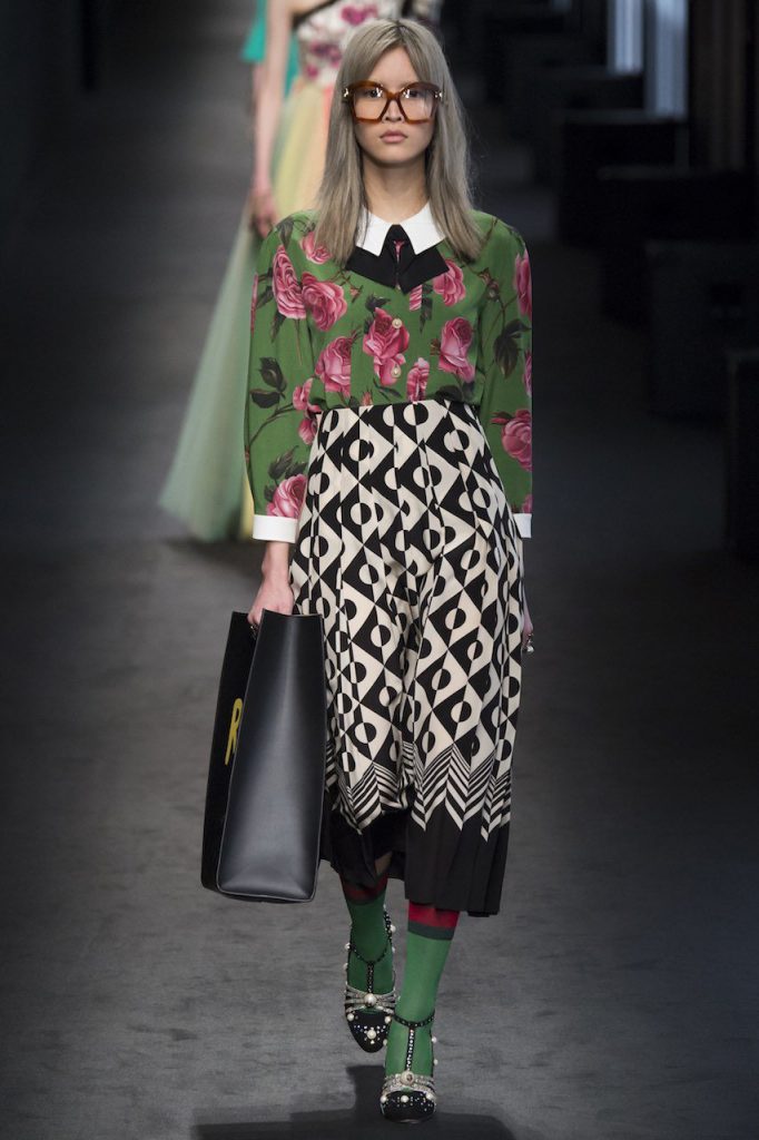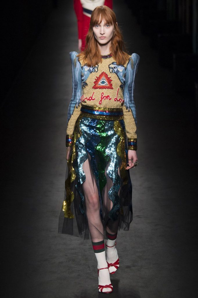 Primo show da nominare (e primo a sfilare) è Gucci che, forte ormai di un’ottima crescita, ha definitivamente impalmato Alessandro Michele come la star del nuovo corso. Uno stilista che ha fatto della ricerca il suo marchio di fabbrica e che, questa volta, ha anche aggiunto alle sue composizioni, pennellate di street art, grazie alla performance di Trouble Andrew. Strati e strati di epoche diverse si sono accumulati sulle sue modelle, facendole sembrare donne rinascimentali contaminate dallo stile della New York di oggi. Scritte tipo graffiti comprese.