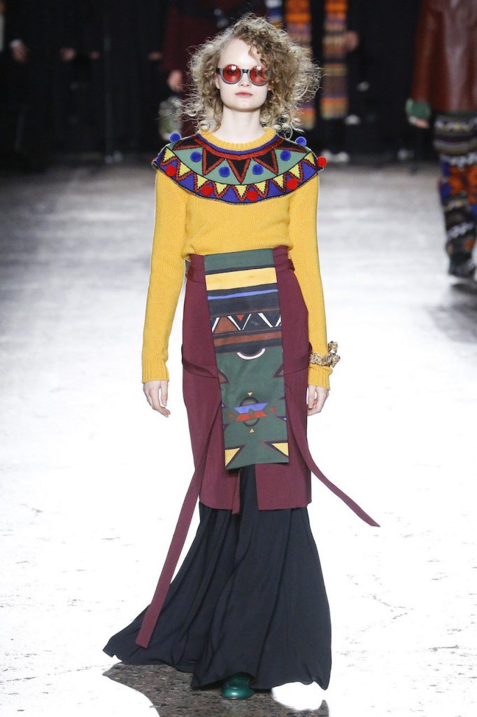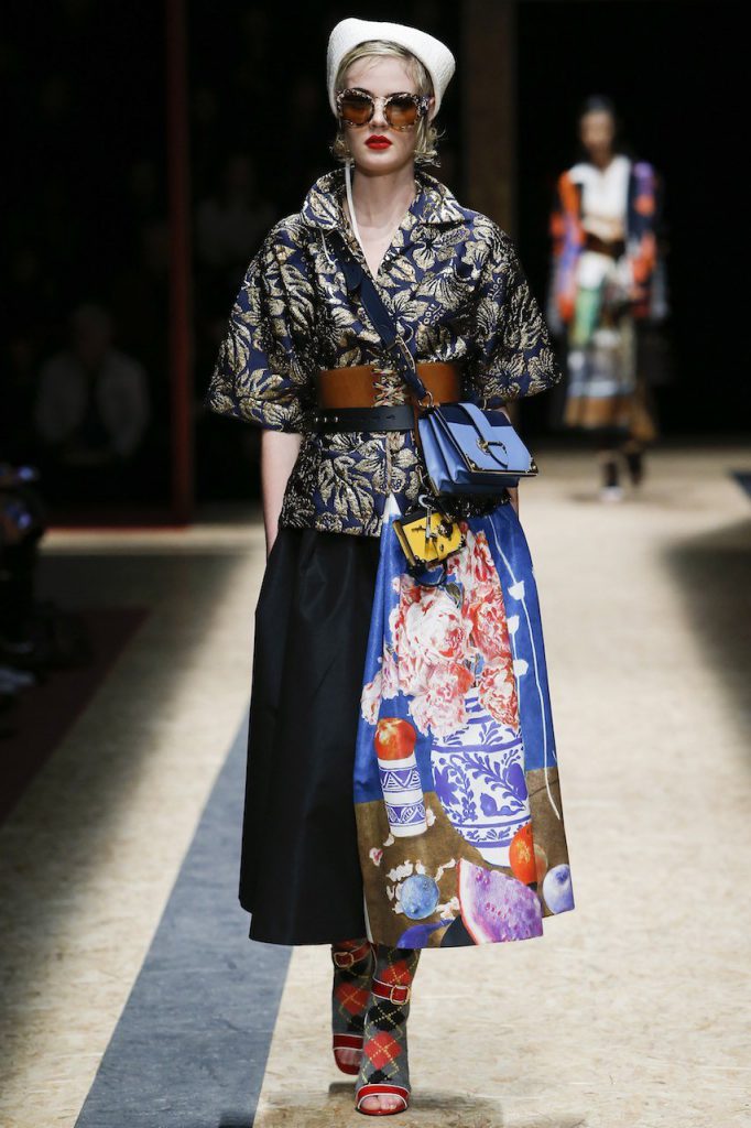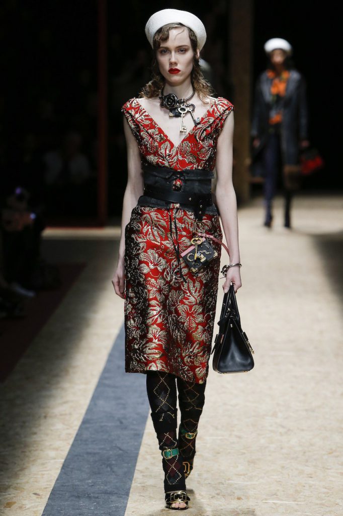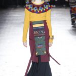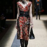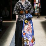 Da nominare c’è poi Prada che ha puntato su un metissage completo per fare un passo avanti rispetto alla scorsa stagione. Contaminazioni di tessuti, patchwork e sovrapposizioni si sono fatti strada su look eterogenei, come a dire, che ogni donna ha il suo stile ma è oggi comunque cittadina del mondo. Dove tutto si mescola. Miuccia Prada, aiutata anche dalle stampe dell’artista Christophe Chemin, ha osato molto, soprattutto con i corsetti sovrapposti ai cappotti e con i maxi-charms appesi alle cinture o ai chocker.