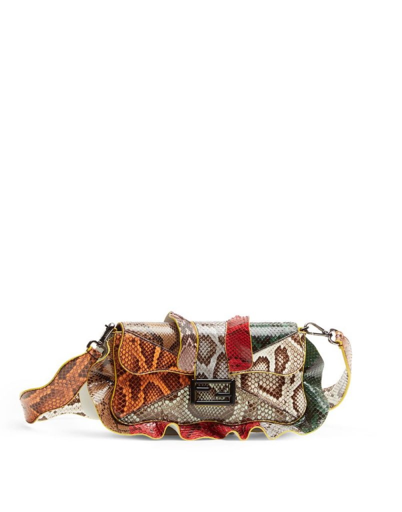 Obsessories! Il decoro è la nuova ossessione per questa collezione di borse di Fendi per l’autunno-inverno 16-17. Ogni modello è un feticcio da portare a passeggio. Per questa stagione, lo stilista Karl Lagerfeld si è ispirato al movimento sinuoso delle onde trasformandolo in dettaglio-leitmotiv, insieme a tocchi di pelliccia intarsiata, rettile tinto, pellami variopinti.