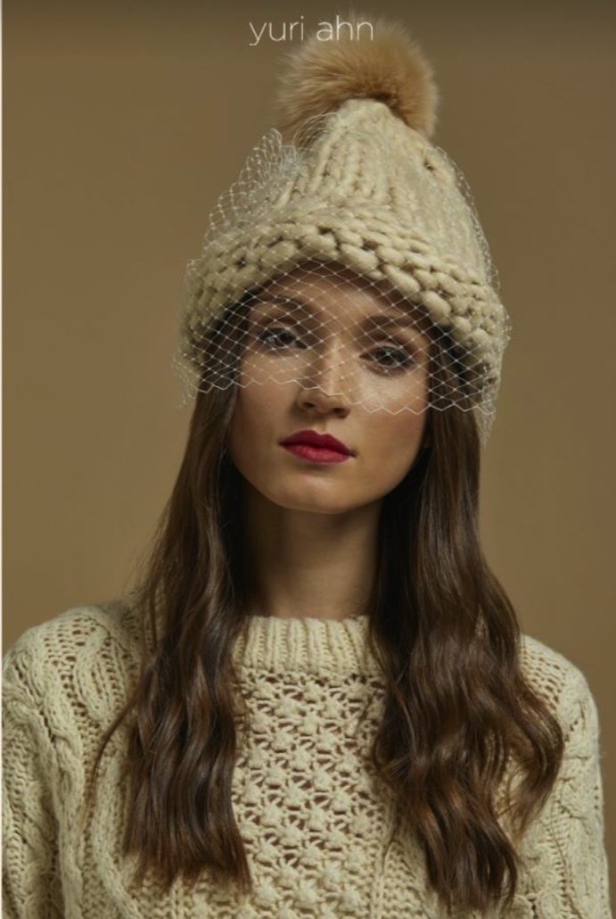 Yuri Ahn pensa alle donne che amano la ricercatezza, l’attenzione al dettaglio e al fatto a mano, ma anche a donne che amano essere eleganti in modo originale. Propone loro baschi, baseball & snapback caps e fascinator. I baschi e i berretti sono in 100% lana con macro trame, sfiziosi pon pon in pelliccia, velette e perline. Esiste una versione mini, che è sempre in lana e decorata con sofisticati fiocchi in rete e gros grain, e una classica, anch’essa in lana. Ci sono svariati modelli: da quello ricoperto da tulle e reso unico da applicazioni in macro perle a quello ricamato a mano con i migliori materiali. E ancora, il modello dove convivono patchs e pon pon e quello con macro jewellery application. Tutti sono accomunati dall’essere sofisticati, speciali, armoniosi, eleganti e femminili. Sono creazioni dove l’ingrediente unico è il mix and match.
