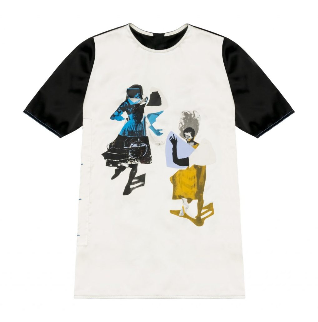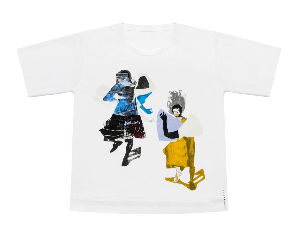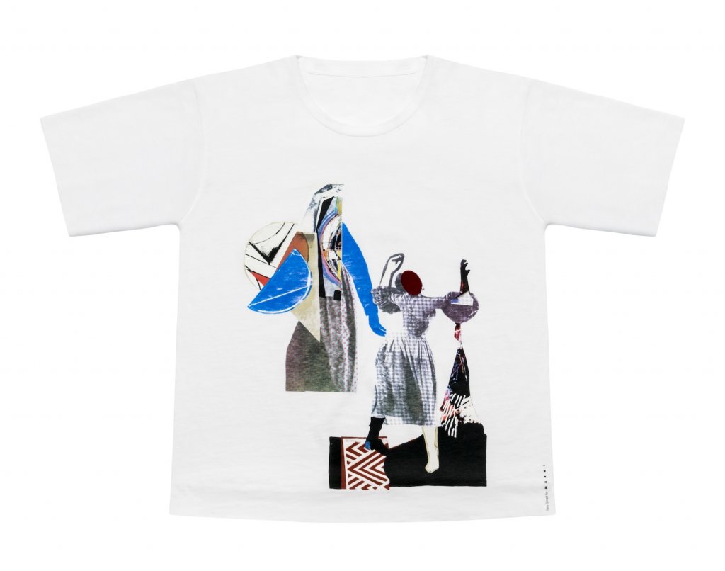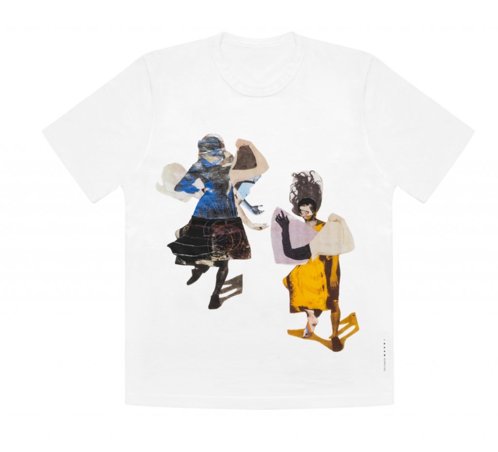 Nelle sue opere della poliedrica artista australiana, realizzate con la tecnica del collage, figure umane stilizzate prendono forma in movimenti impossibili, ma dalla forza vibrante, tramite l’accostamento di materiali differenti e immagini in tagli inaspettati. Nascono così illustrazioni uniche che animano le t-shirt in jersey e che si estendono su shopper e borse. Riviste nelle dimensioni si trasformano poi in pattern su top di viscosa o in ricami sulle felpe e sulle camicie in popeline bianco.
