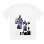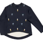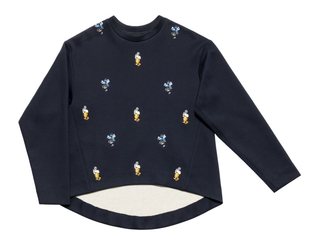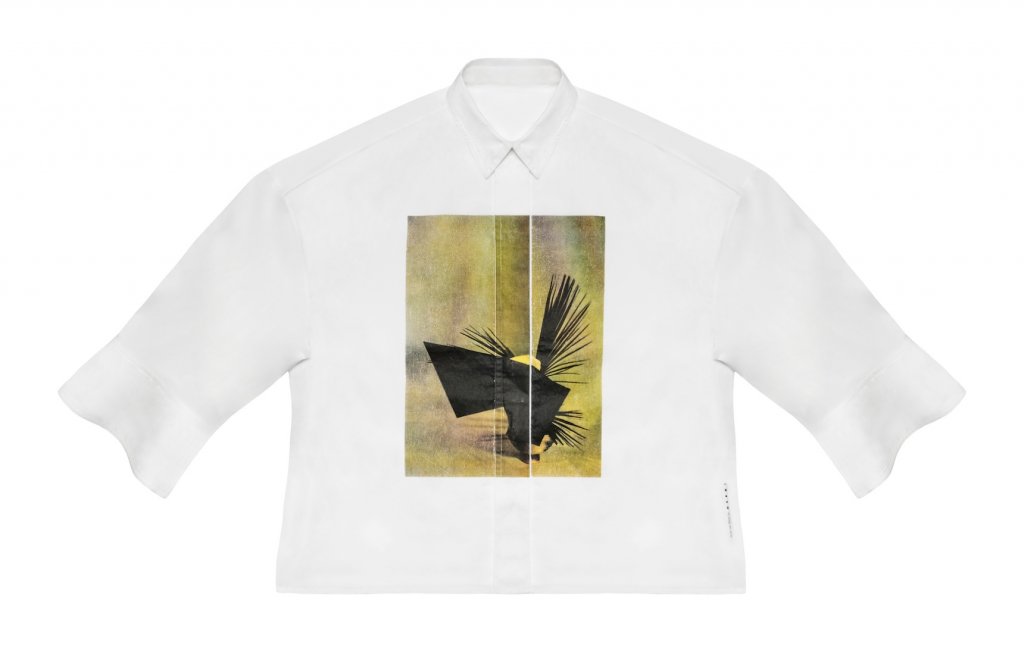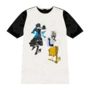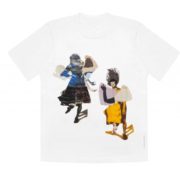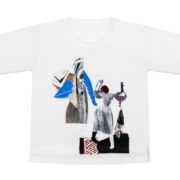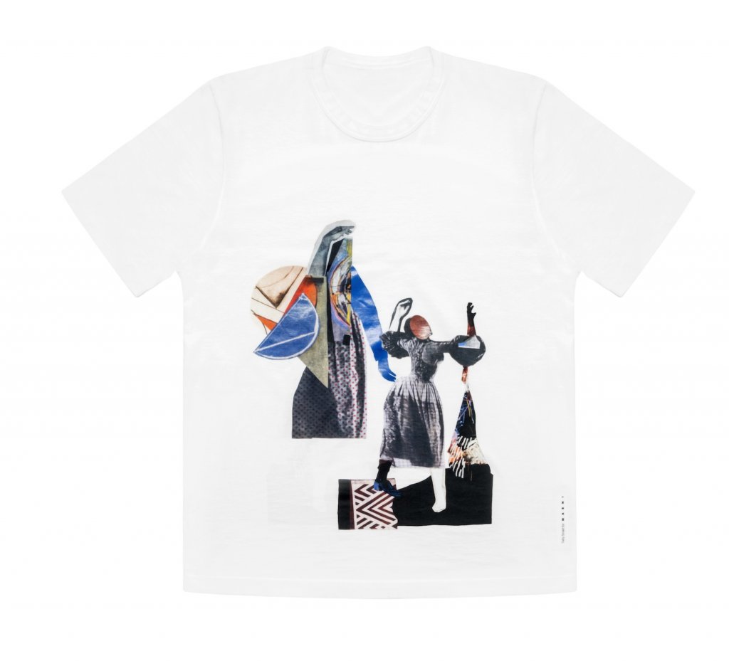 Nelle sue opere della poliedrica artista australiana, realizzate con la tecnica del collage, figure umane stilizzate prendono forma in movimenti impossibili, ma dalla forza vibrante, tramite l’accostamento di materiali differenti e immagini in tagli inaspettati. Nascono così illustrazioni uniche che animano le t-shirt in jersey e che si estendono su shopper e borse. Riviste nelle dimensioni si trasformano poi in pattern su top di viscosa o in ricami sulle felpe e sulle camicie in popeline bianco.