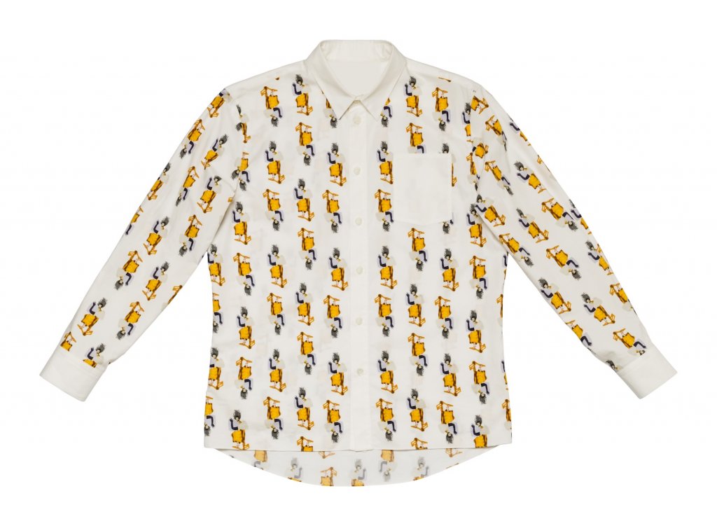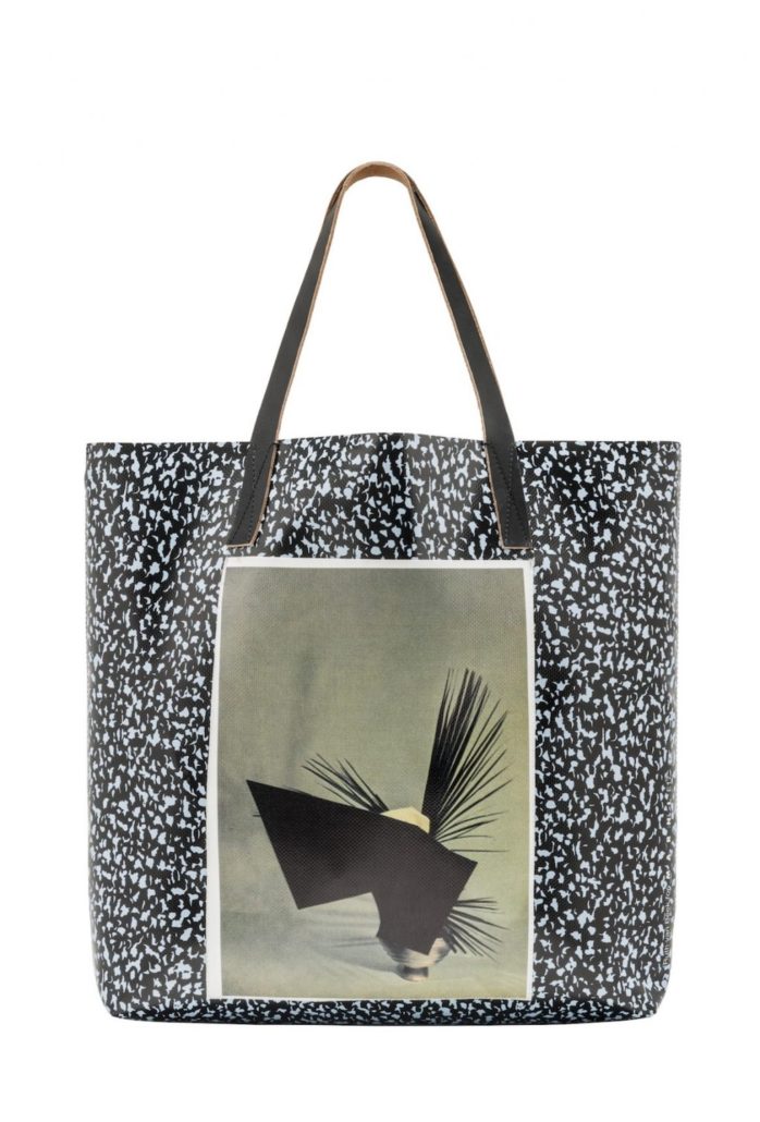 Anche in questo caso, le illustrazioni costruite da Ruth van Beek animano t-shirt, camicie in popeline, giacche a vento, ma anche una gamma shopping bag e borse della main collection che riprendono il motivo artistico a stampa allover Marni.