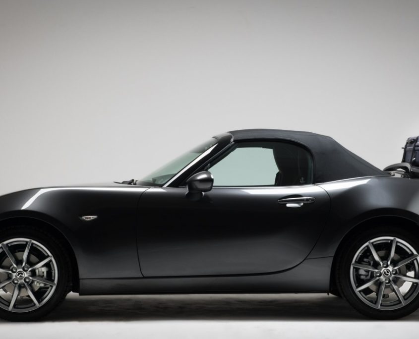 La MX-5 Grand Tour è dotata di un motore 2.0 da 160 cavalli con i-stop e sistema di recupero dell’energia in frenata. Il cambio è manuale a 6 rapporti e la carrozzeria è Machine Gray con capote in tessuto nero e frangivento trasparente in plexiglass.
