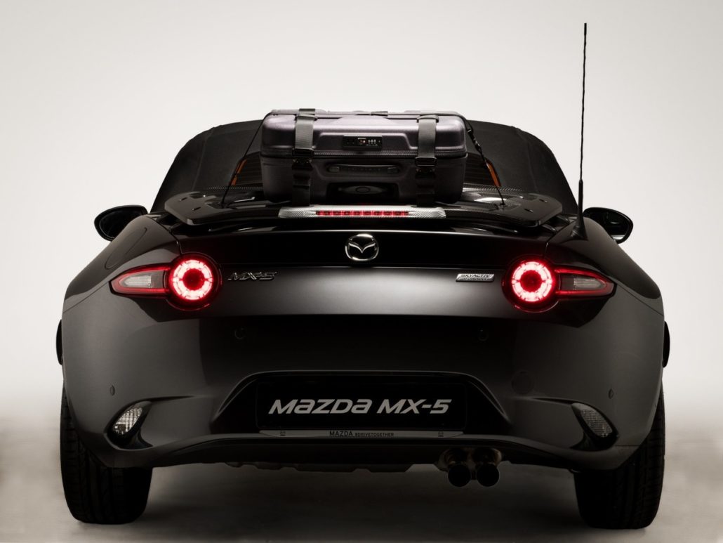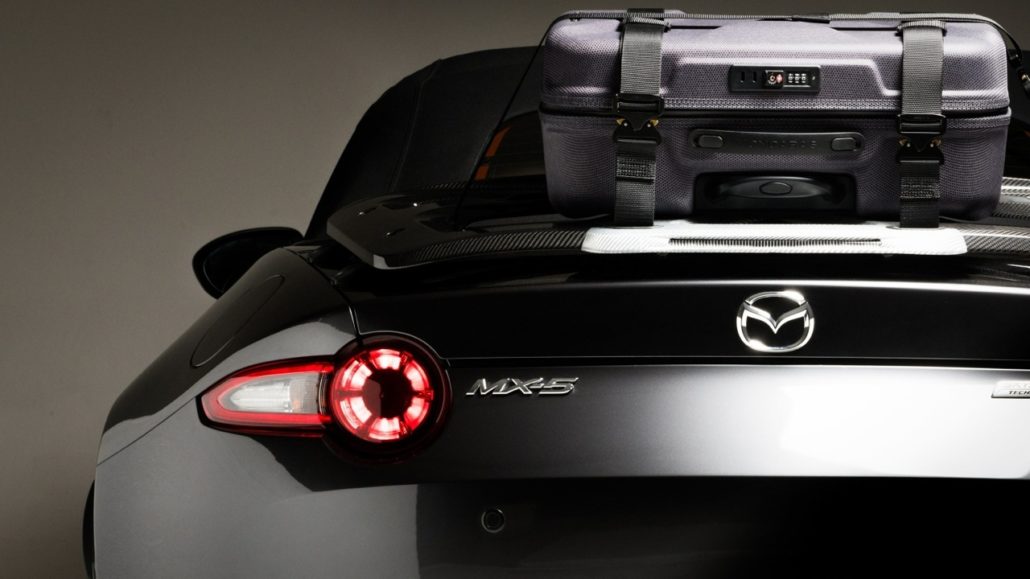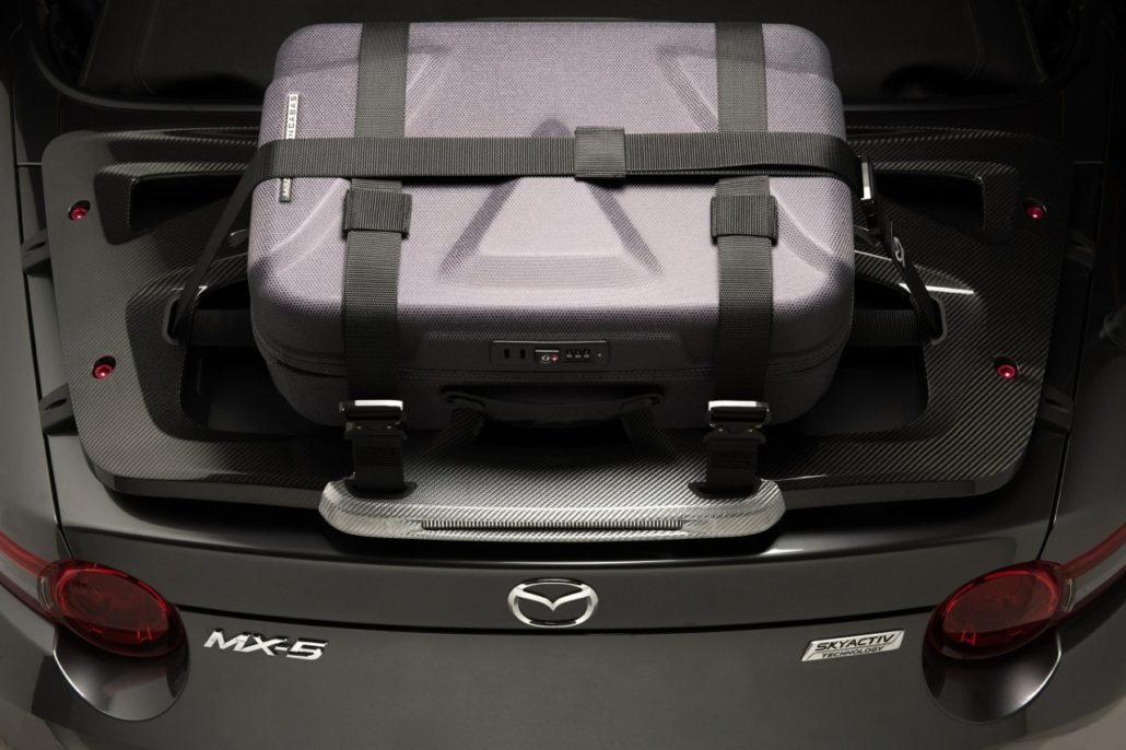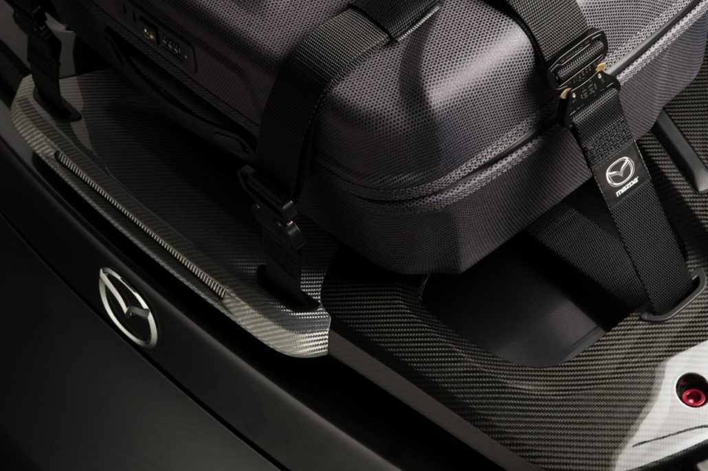 I rivestimenti sono in pelle Nappa Brown, in perfetto abbinamento con la carrozzeria. Il particolare esclusivo? In questa edizione super limitata è il portapacchi in fibra di carbonio con cinghie di fissaggio e valigia dedicata – prodotta da Moncabass in vendita solo sul web – per rendere più capace il bagagliaio della Mazda MX-5 e non porre alcun limite al viaggio.