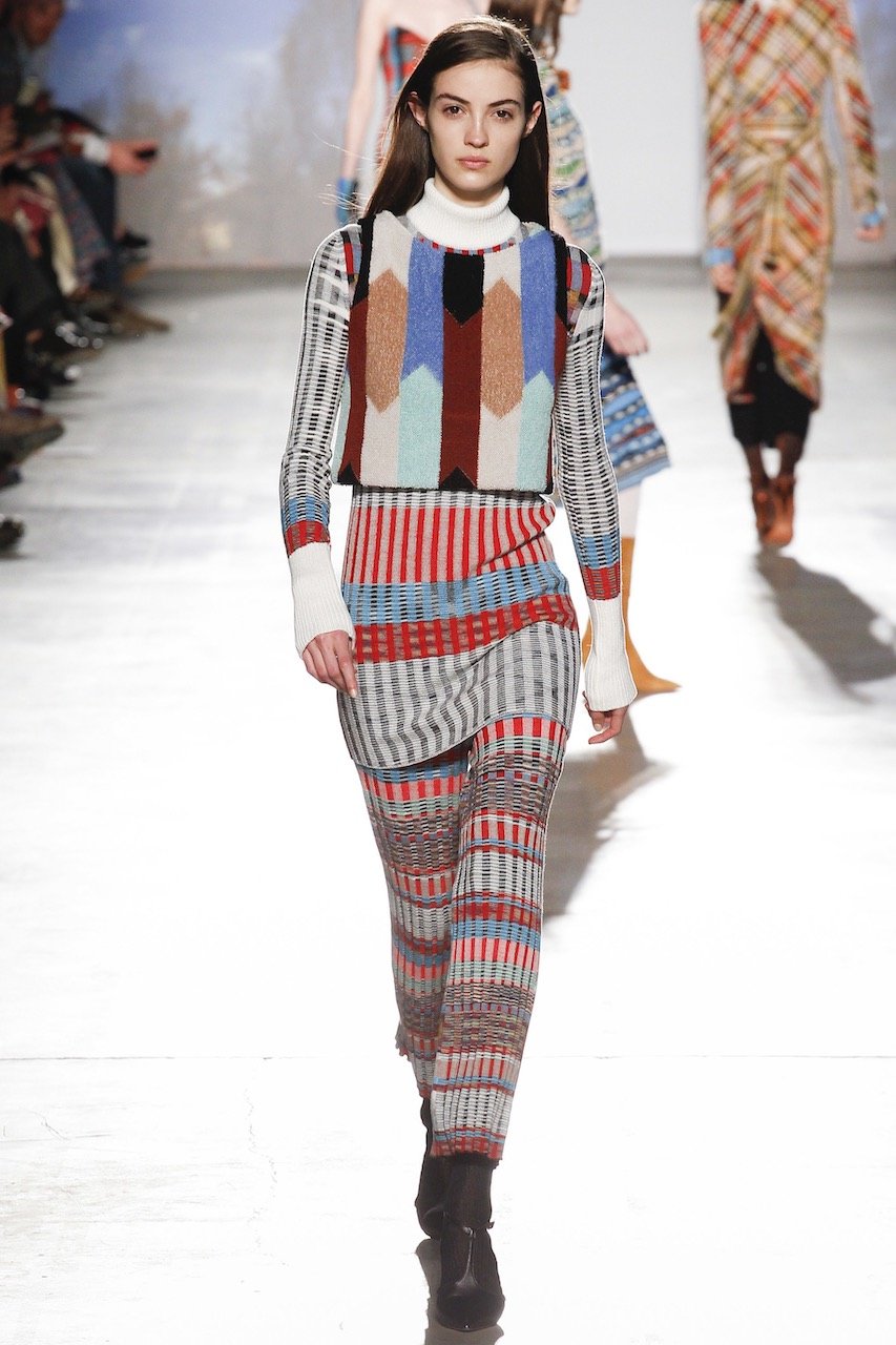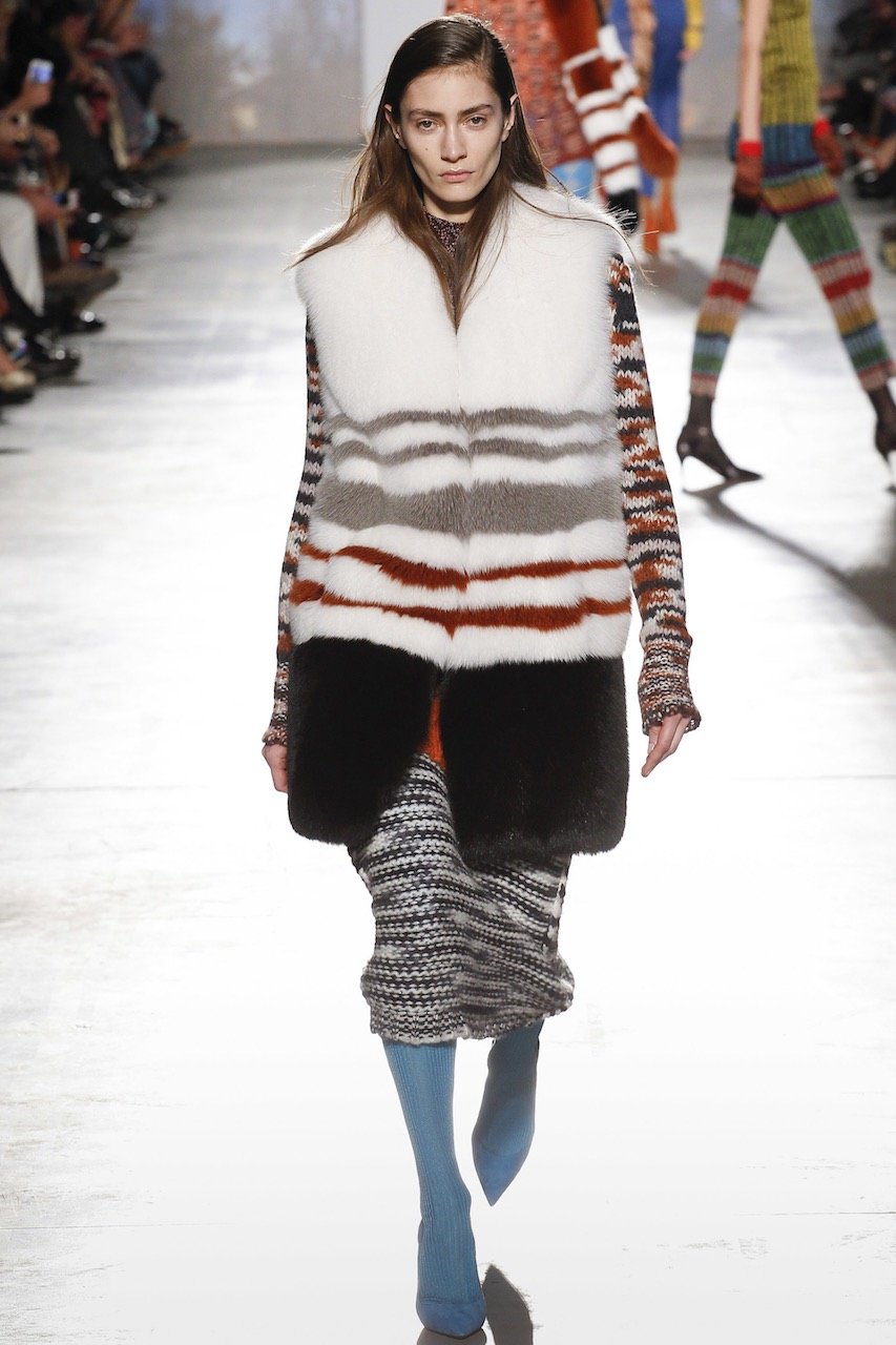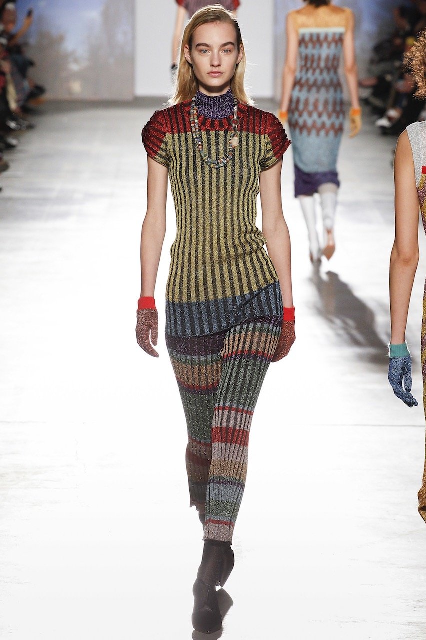 l put together Missoni per l’inverno 2017 diventa un libero combinarsi di preziose textures a coste movimentate da effetti cinetici, righe bicolore, policromie tipo pittura astratta.