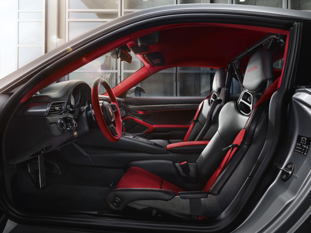 Gli interni sono l’essenza sportiva. L’Alcantara rossa domina i rivestimenti, insieme alla pelle di colore nero ed elementi in carbonio a vista. I cambi di marcia sono veloci e diretti grazie anche al volante sportivo GT2 RS con paddle. I sedili a guscio sono realizzati in carbonio a vista per esaltare le dinamiche di guida supersportive. I prezzi? La 911 GT2 RS è in vendita in Italia a partire da 293.000 euro.