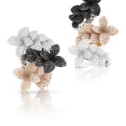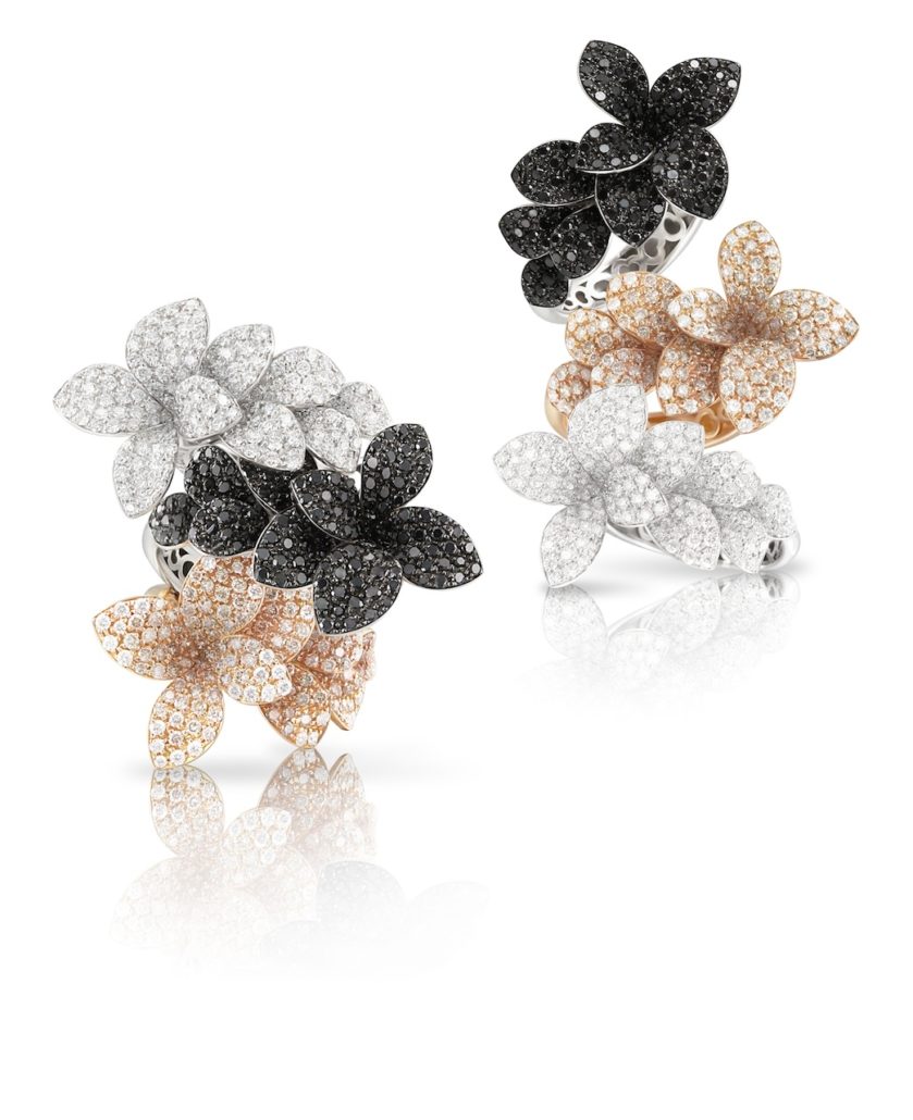 Si ispira a una danza di foglie che viaggiano come comete di stelle nelle notti più preziose e che arrivano a illuminare di calore il primo sorgere dell’alba nei giardini di primavera. L’oro bianco si intreccia con diamanti bianchi e neri. L’oro rosa si illumina di diamanti bianchi e champagne. Collier, bracciali, anelli e orecchini: la donna Pasquale Bruni è libera di scegliere di quale luce brillare.