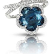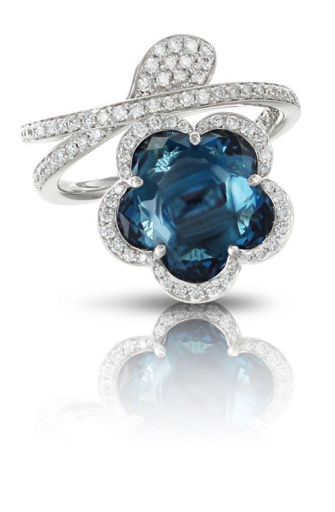 E’ un’altra collezione iconica di Pasquale Bruni. Le linee sono avvolgenti. Le due sfumature dell’oro (il bianco e il rosa) seguono le forme del corpo e, grazie al contemporaneo design, si attorcigliano con leggerezza e flessibilità al corpo femminile. Il fiore, questa volta, si mostra in tutta la sua completezza, con il suo gambo e la sua foglia. I fili di oro bianco e diamanti si schiudono in corolle di topazio blu london (pietra della bellezza interiore e della verità). L’oro rosa, invece, sboccia in gemme di rubino almandino.