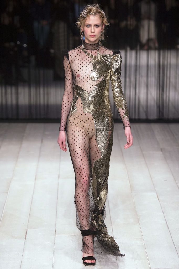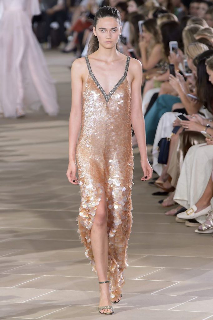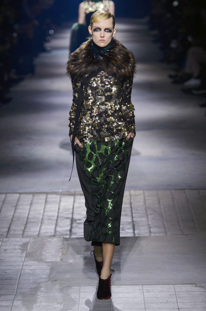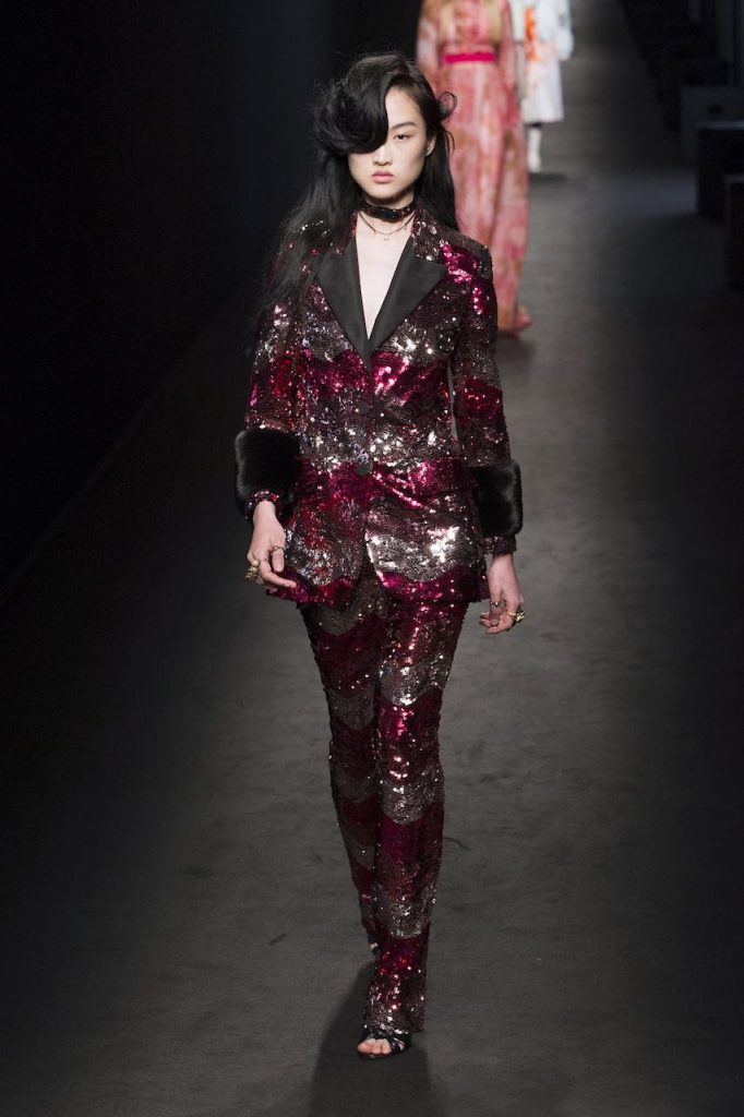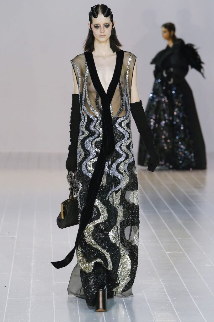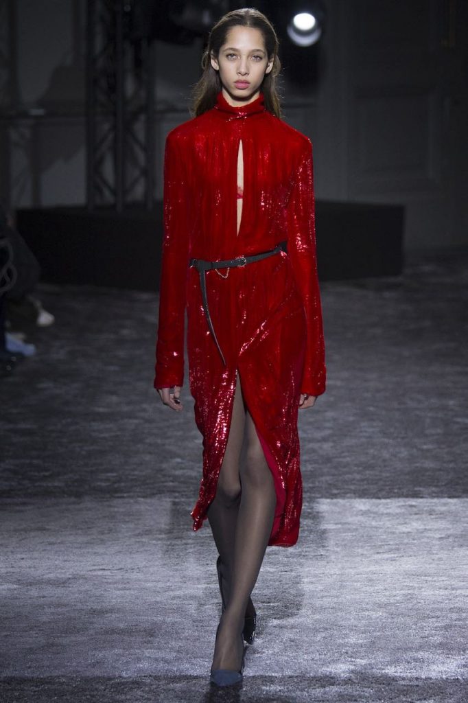 E se Dolce & Gabanna ha chiuso il defilé per questo inverno 2017 con un trionfo di abiti-gioiello, non è da meno Chanel che ha fatto del suo canonico tubino bicolore – ma questa volta in versione tutto strass – il pezzo più appariscente da aggiungere al guardaroba per queste settimane. Mentre Gucci punta sull’iper décor rutilante di completi con giacca e pantaloni rivestiti di lustrini, Moschino opta per un effetto flamboyant con longdress da incendiaria sirena che sembrano strappati indosso. Tra i colori più hot, il rosso la fa da padrone, avevate dubbi? Per l’ispirazione, comunque, basta dare un’occhiata alla sfilata di Nina Ricci che fascia le sue modelle in fulgidi chemisier fiammeggianti di strass.