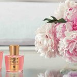 Si dal romantico abito con bustino steccato in raso di seta rosa cipria, all’abito da sera nero midnight in georgette di seta opalescente decorato con cristalli Swarovski, al modello scarlatto in georgette di seta (con applicazioni di macro paillettes) al longdress sempre in chiffon di seta tagliato a sbieco, con jabot sullo scollo in color terracotta, fino all’abito in shantung di seta con gonna a balze rosa candy.