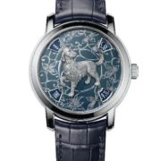 Due creazioni dedicate al segno del cane. Vacheron Constantin continua il dialogo con i collezionisti di alta orologeria con La légende du zodiaque chinois. Il fedele amico dell’uomo succederà al gallo il 16 febbraio 2018, in occasione del Capodanno cinese. Le due nuove creazioni, realizzate in dodici modelli ciascuna, abbinano l’eccellenza tecnica del calibro 246 G4 alla bellezza dei mestieri dell’arte.